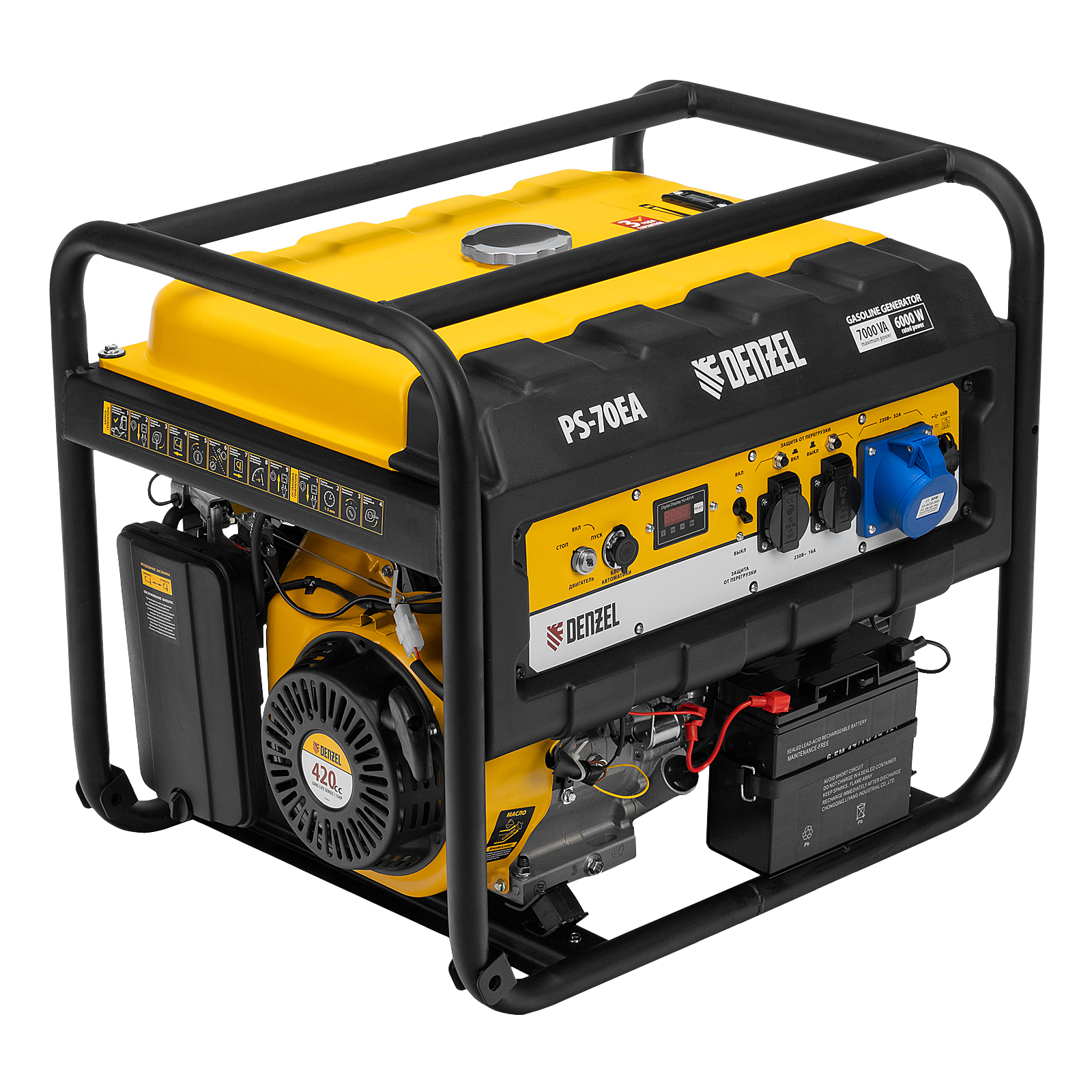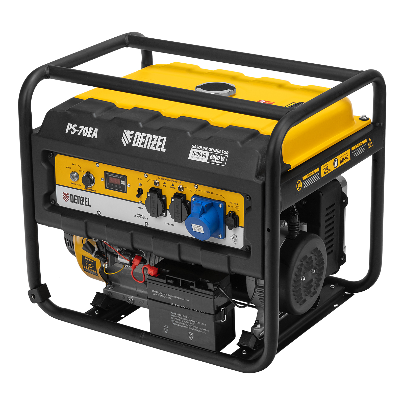 Генератор бензиновый Ps 70 Ea, 7.0 квт, 230 в, 25 л, коннектор автоматики, электростартер Denzel