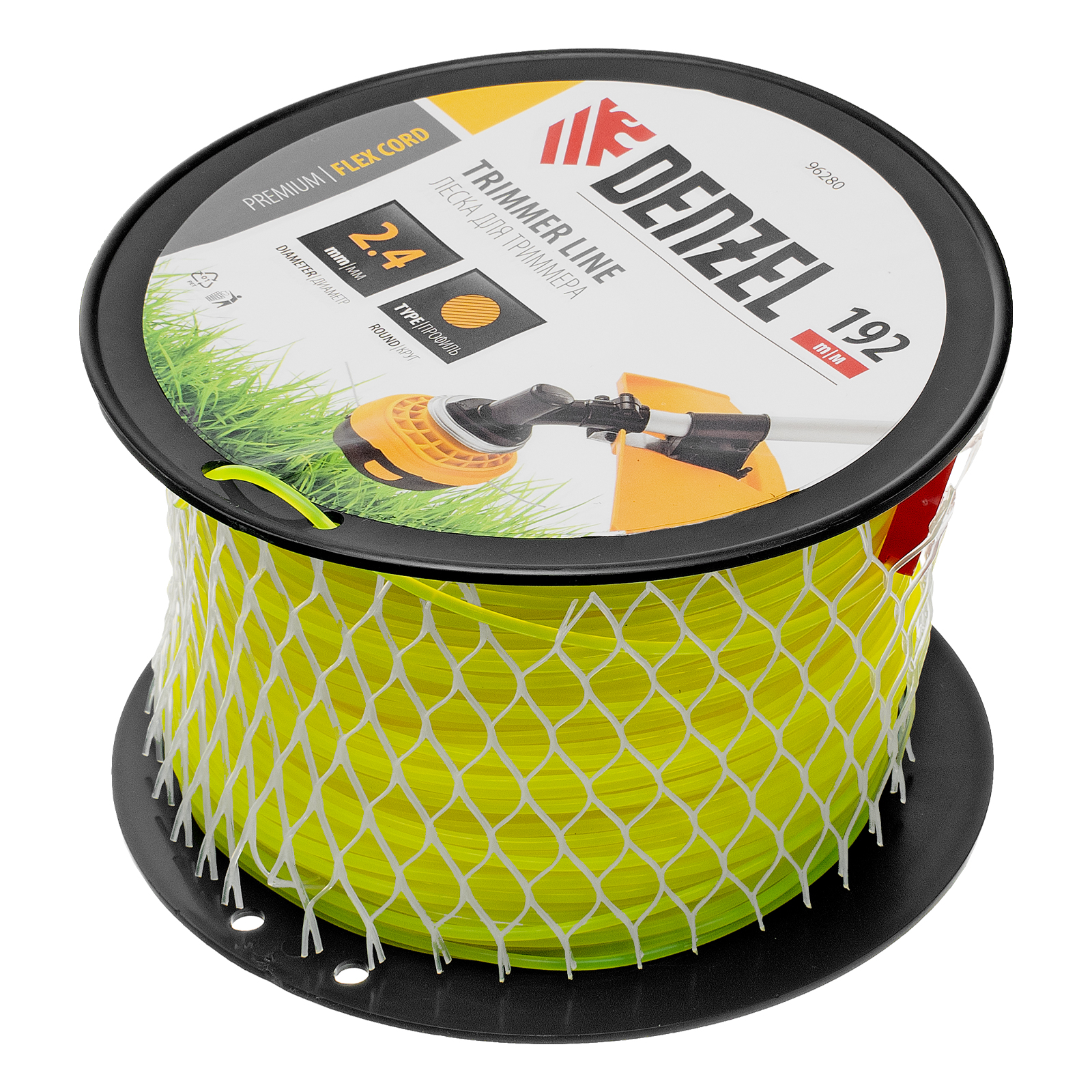 Леска для триммера круглая, 2,4мм х 192м, на Din катушке Flex Cord Denzel