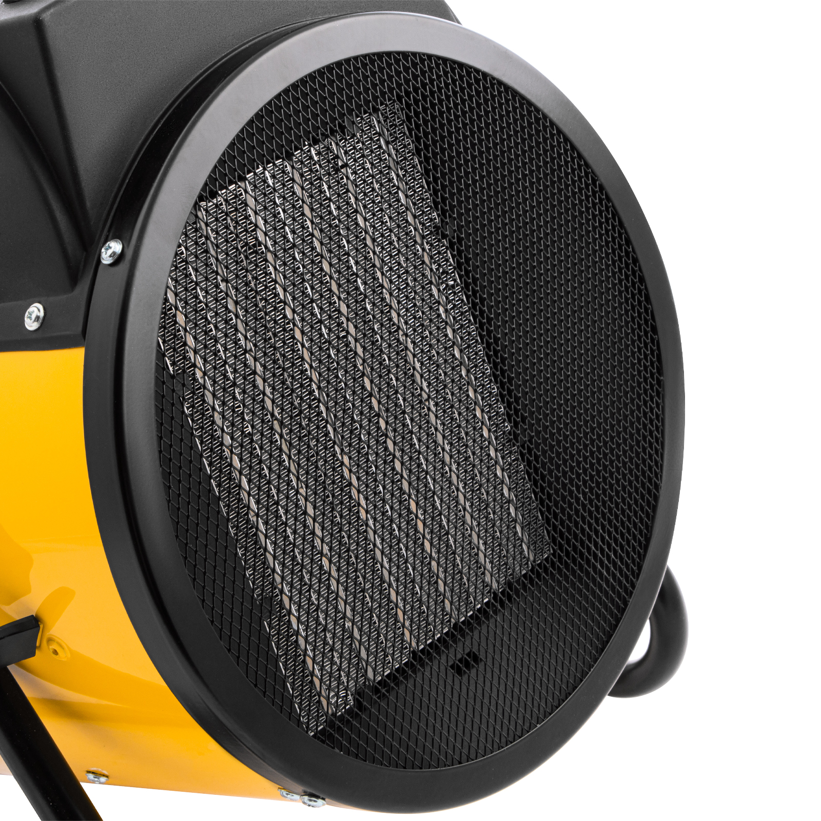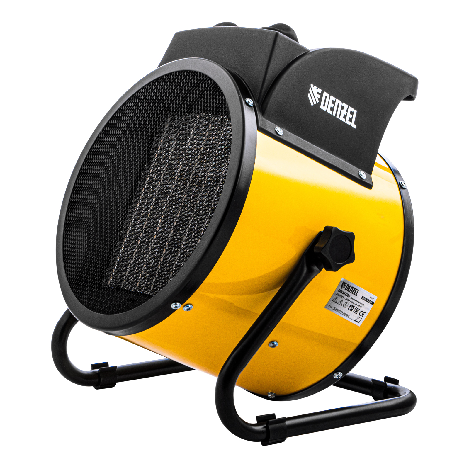 Тепловая пушка, керамический нагреватель (тепловентилятор) dhc 5-400, 230 в, 0.04/3/5 квт denzel. Бренд: DENZEL Габариты: 300x235x345 мм Гарантия: 3 года Материал корпуса: металл, пластик Напряжение питающей сети: 230 В Особенности: защита от перегрева, наличие сетевой вилки Тип: Пушка тепловая электрическая Тип нагревательного элемента: керамический Тип питания: сеть Страна бренда: Германия Страна производства: Китай Вес (нетто), кг: 5.27 Максимальный ток, А: 22.7 Производительность, м?u002Fч: 423 Рекомендуемая площадь, м?: 50 Тип упаковки: картонная коробка Длина в упаковке, мм: 330 Ширина в упаковке, мм: 250 Высота в упаковке, мм: 360 Вес (брутто), кг: 4.5 Тепловая пушка: 1 шт Руководство по эксплуатации с гарантийным талоном: 1 шт Тепловая пушка (тепловентилятор) Denzel DHC 5-400 96428 с керамическим нагревательным элементом работает на мощности 0,04/3/5 кВт. Пригодится в любую погоду: в холод обогреет помещение, в теплое время года может использоваться как вентилятор. Также пушка применяется во время отделочных работ для просушки поверхностей — окрашенных и оштукатуренных стен, стяжек и т.д. Максимальной мощности 5 кВт хватит для обогрева помещения площадью до 50 кв.м. Работа тепловентилятора не доставляет дискомфорт, безопасна для здоровья людей и животных, поскольку керамический нагревательный элемент не сушит воздух и не выделяет вредных веществ.;Внимание! Тепловая пушка поставляется с установленным кабелем питания и силовой вилкой 230 В / 32 А, для подключения используется силовая розетка 230 В / 32 А (обычные бытовые розетки не рассчитаны на мощность 5 кВт). Преимущества Безопасность — биметаллический многоразовый предохранитель отключает питание при перегреве, также предусмотрен дополнительный аварийный термодатчик. Защита пользователя — передняя и задняя решетки на корпусе предотвращают случайный контакт с рабочими элементами. Простое управление — при включении загорается световой индикатор, а для переключения режимов и установки температуры служат два механических тумблера. Встроенный термостат — заданная температура автоматически поддерживается без участия пользователя. Регулировка угла наклона корпуса — поток нагретого воздуха можно направлять на конкретную область для эффективной просушки и обогрева. Защита от коррозии — металлический корпус окрашен термостойкой краской. Устойчивая конструкция — широкая опора с 4 ножками исключает опрокидывание тепловентилятора. Удобное хранение и транспортировка — пушка весит всего 1,7 кг, на корпусе предусмотрена рукоятка. Гарантия 3 года — высокое качество тепловой пушки подтверждено производителем.  развернуть описание ▼