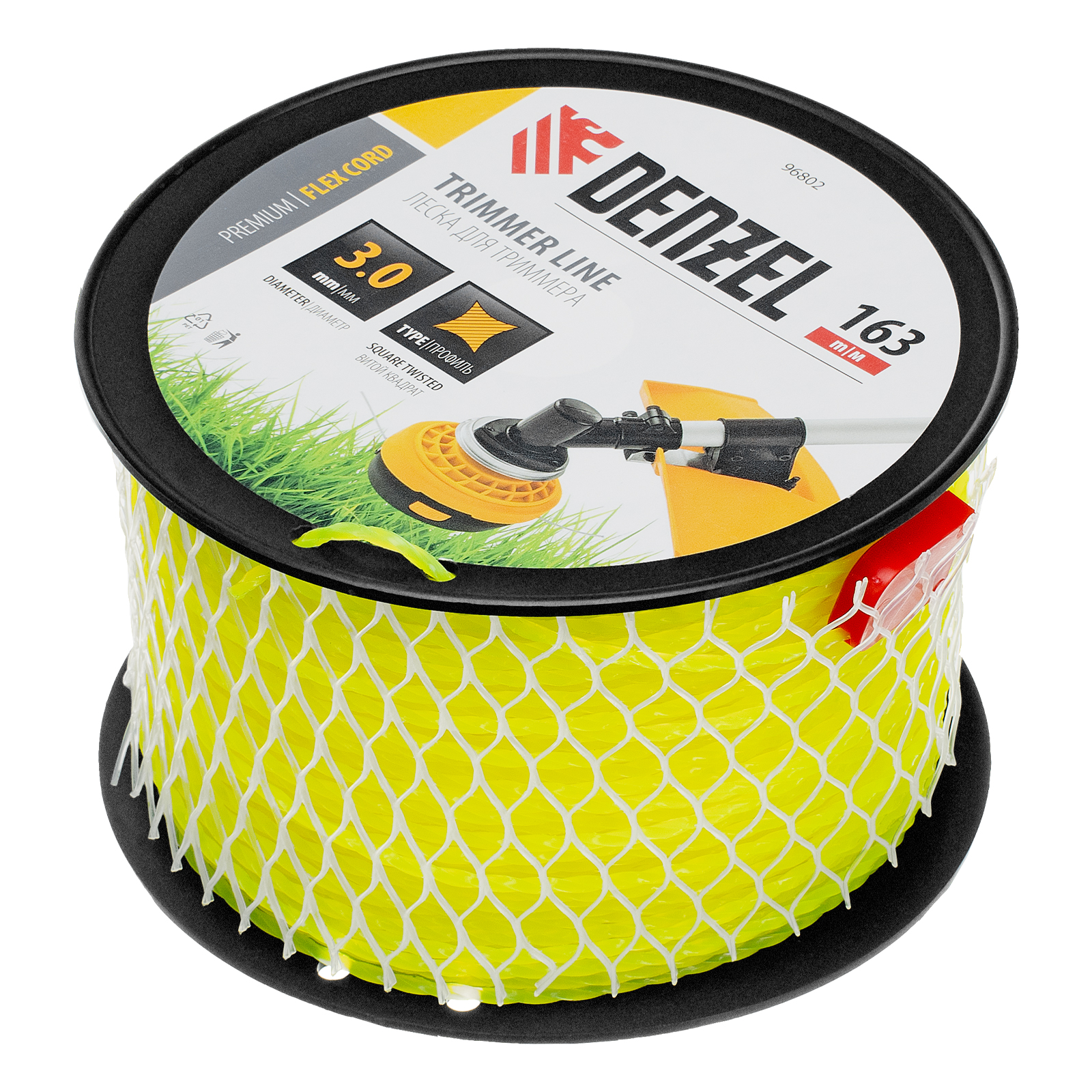 Леска для триммера витой квадрат, 3,0мм х 163м, на Din катушке Flex Cord Denzel