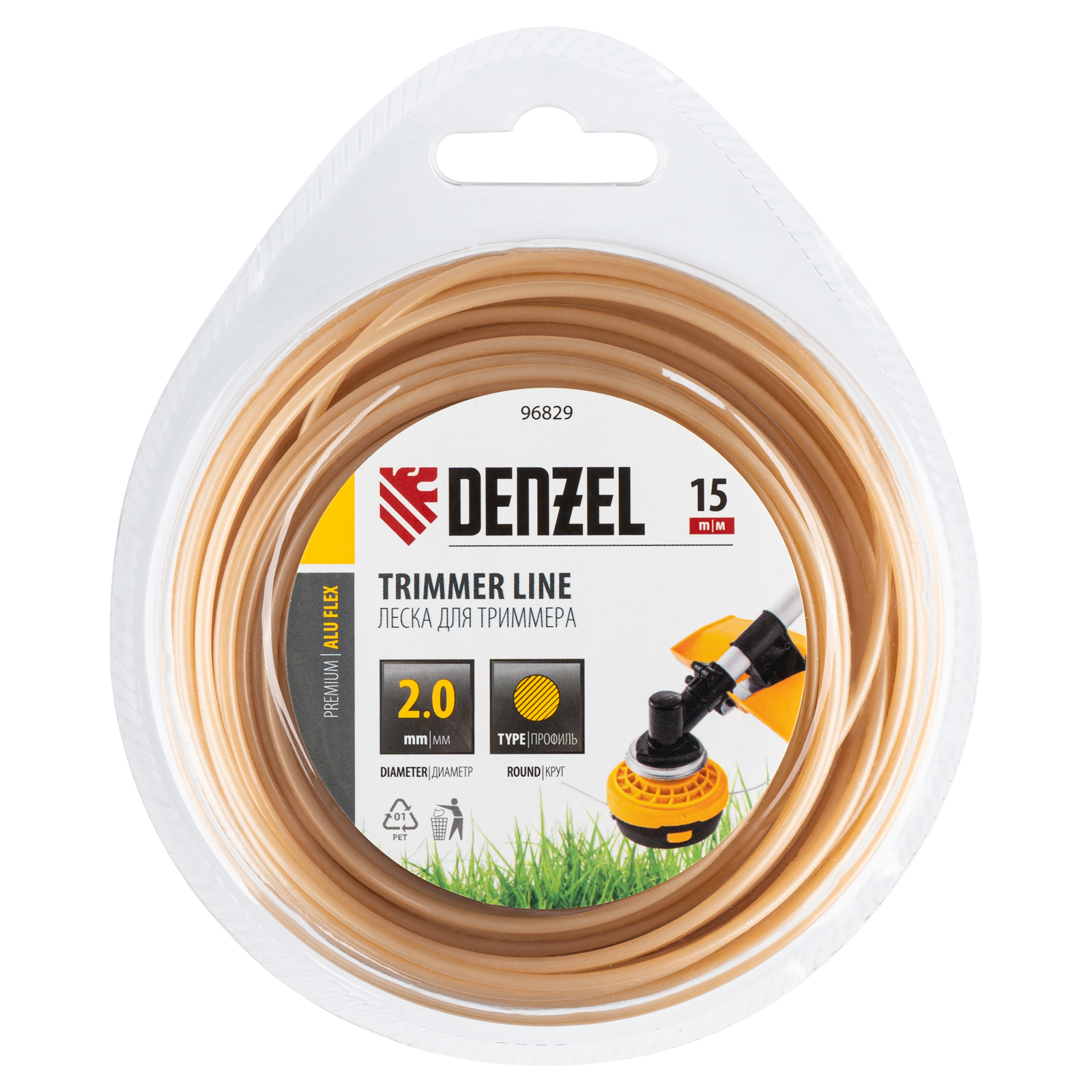 Леска для триммера армированная алюминием круглая, 2,0мм х 15м, блистер Aluflex Denzel