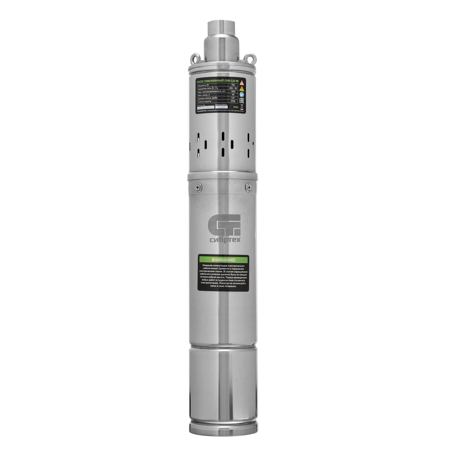 Скважинный насос снв-3,5-90, винтовой, диаметр 3,5, 700 вт, 1500 л/ч, напор 90 м сибртех
