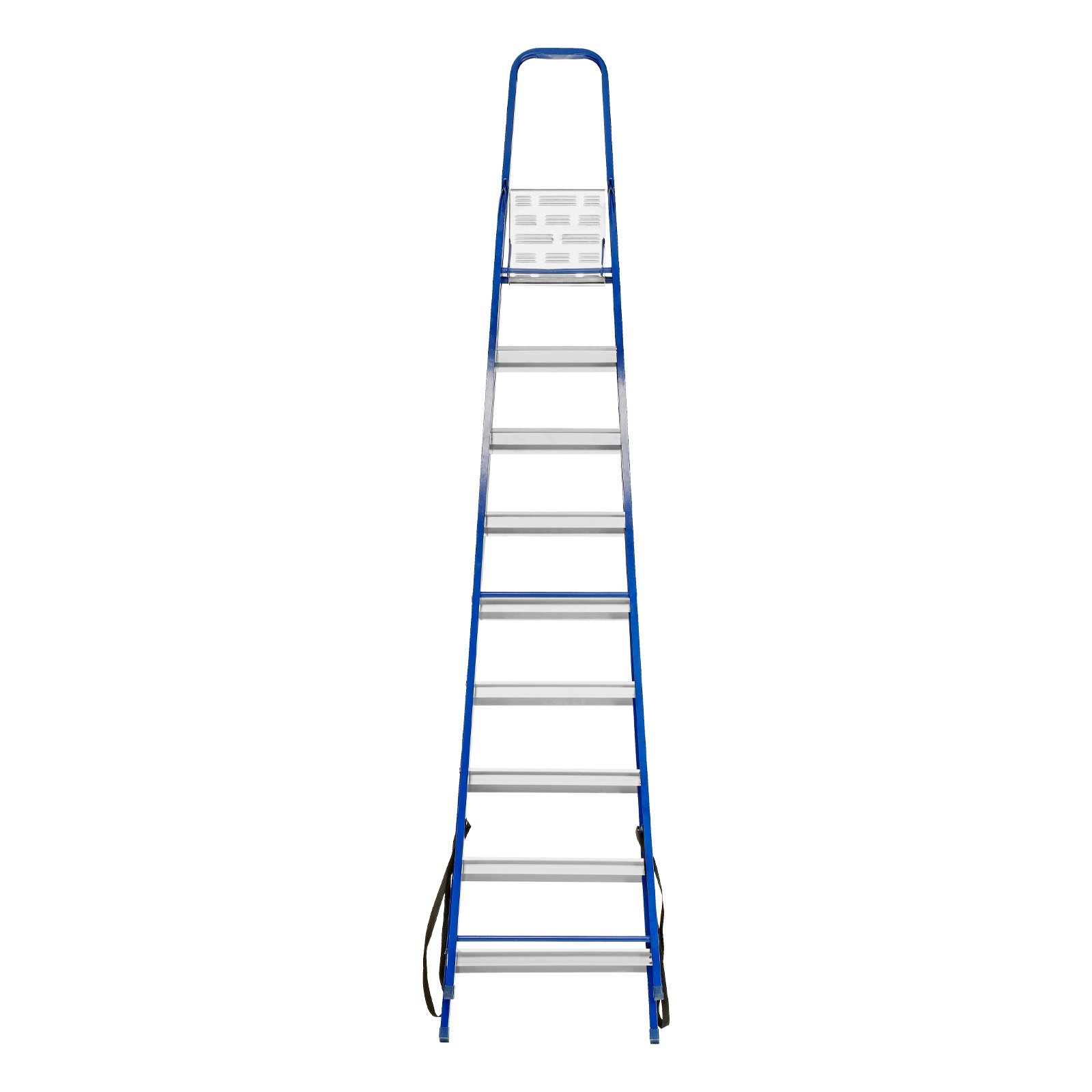 Стремянка, 9 ступеней, стальной профиль, алюминиевые ступени сибртех