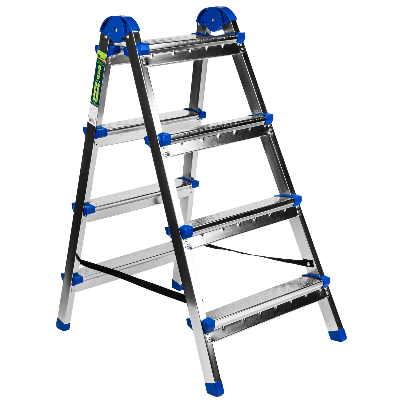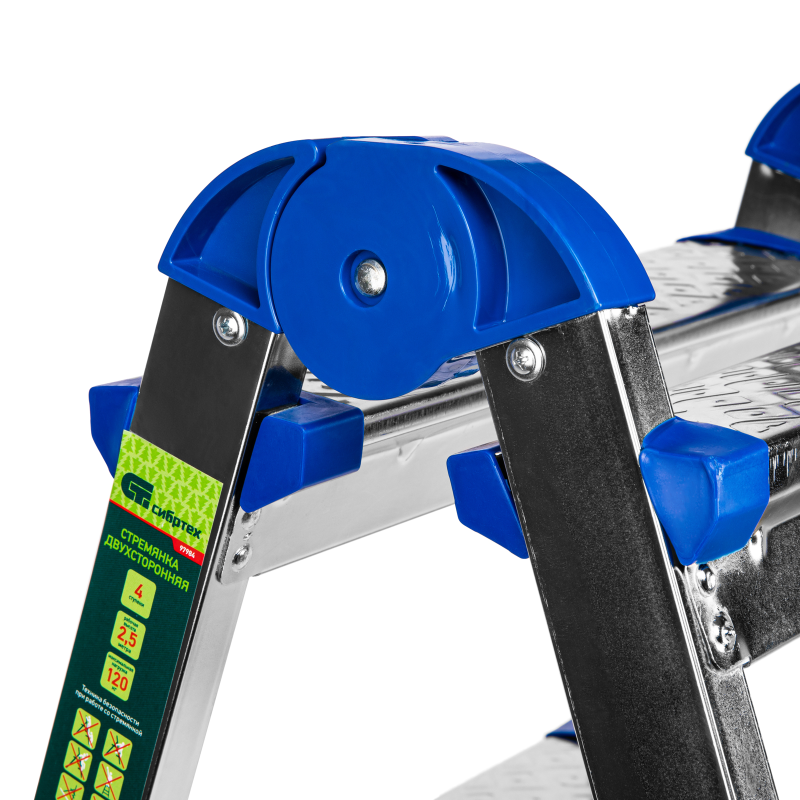 Стремянка двухсторонняя 4 ступени, сталь профиль, стальные ступени, сибртех