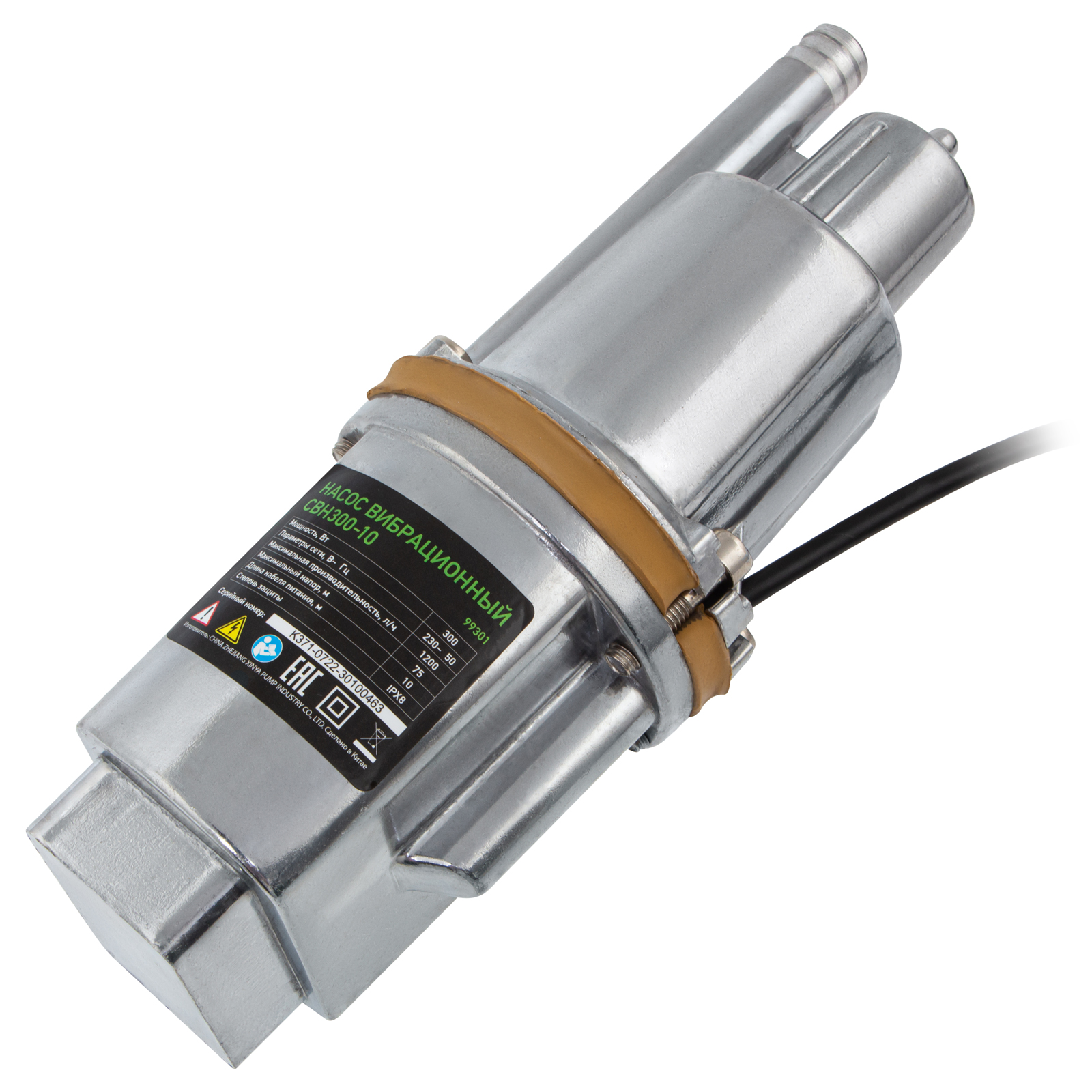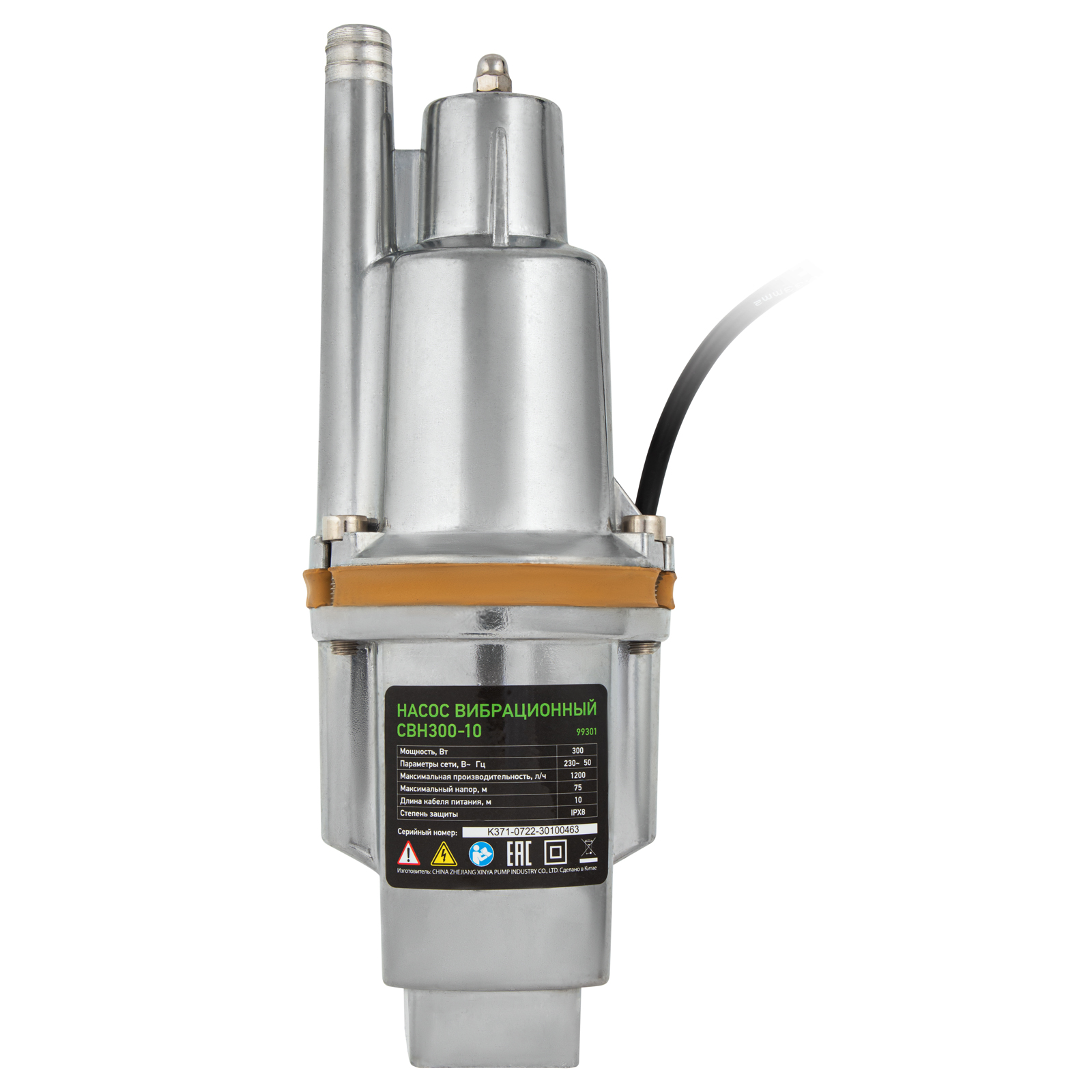 Вибрационный насос свн300-10, верхний забор, 300 вт, напор 75 м, 1200 л/ч, кабель 10 м сибртех, 1200 л/ч