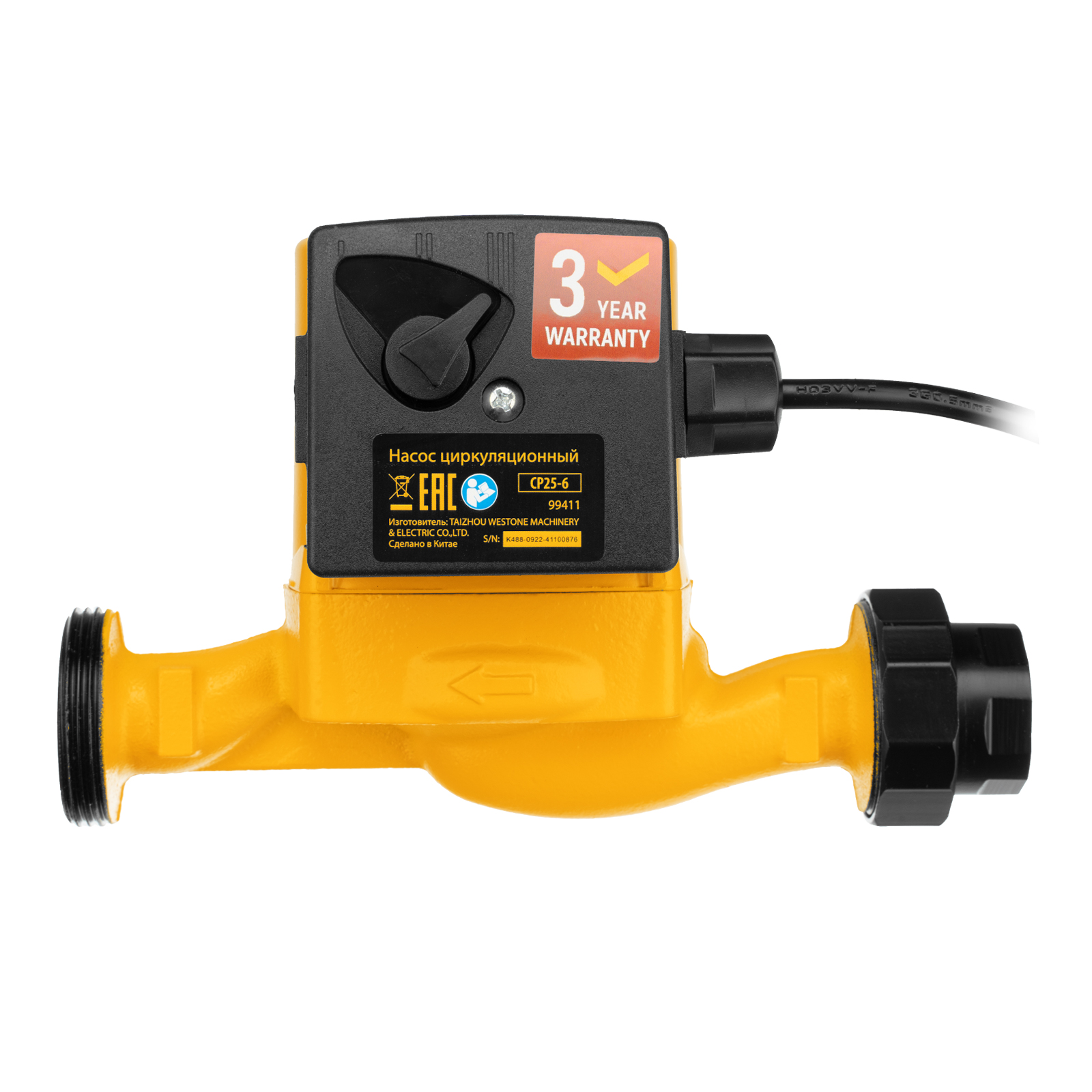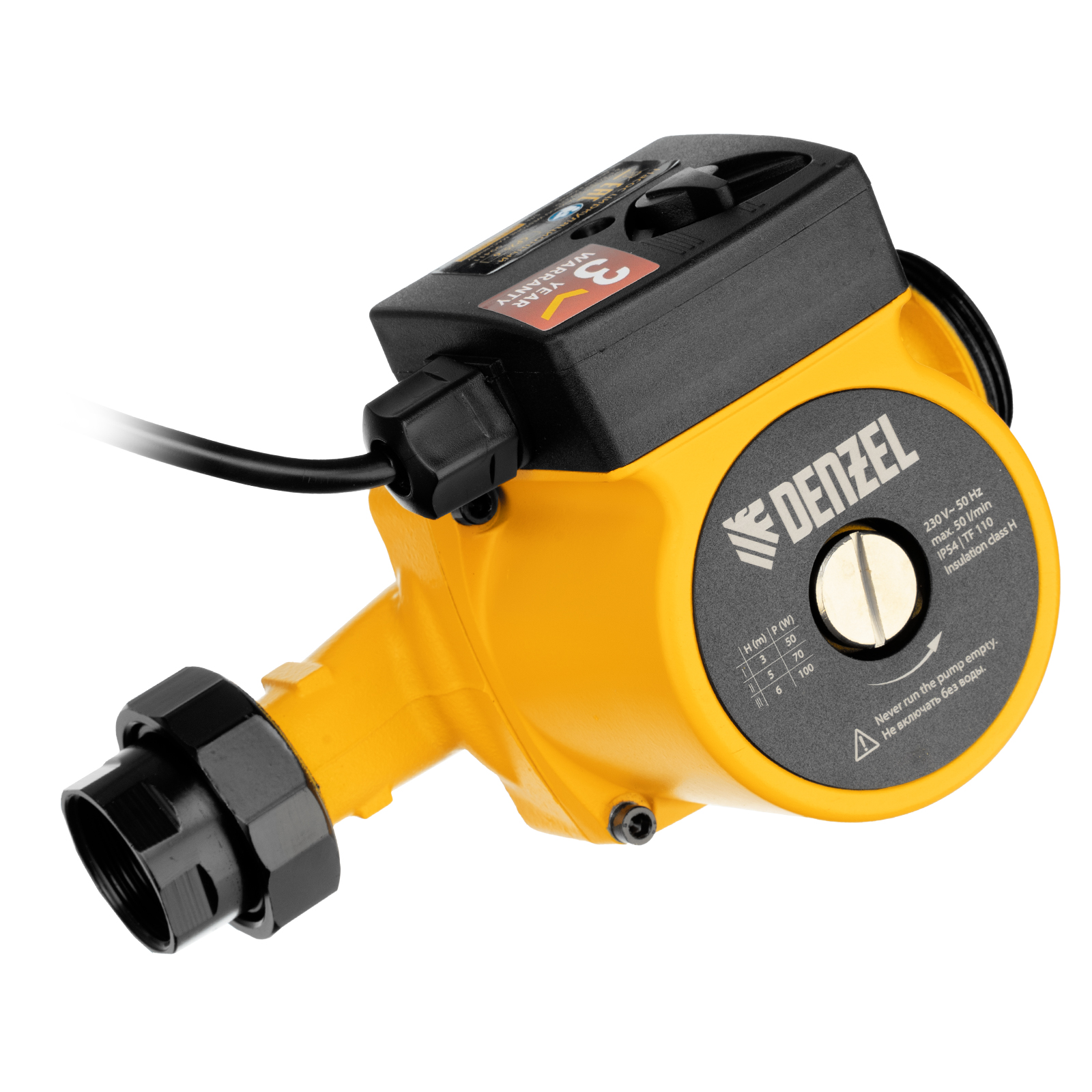 Циркуляционный насос Cp25-6, напор 6 м, 50 л/мин, 1 м кабель, монт. длина 180 мм Denzel