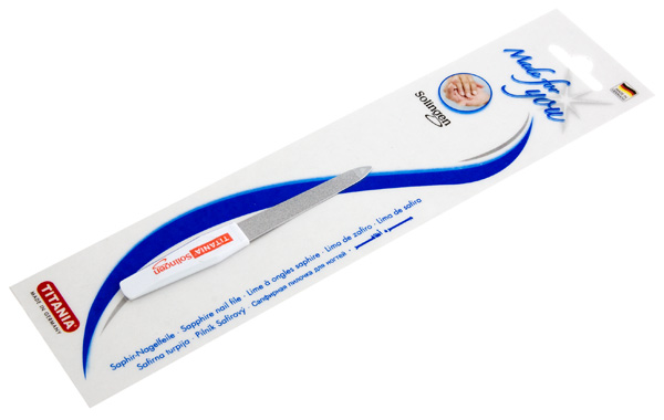 Пилка 10,5 см алмазная. Пилка 10,5 см для ногтей с микросапфировым напылением. Одна сторона покрыта более крупным абразивом для грубой обработки ногтя, вторая с более мелким для финишной обработки. Страна происхождения: Германия Артикул: 1040/4 Бренд: TITANIA