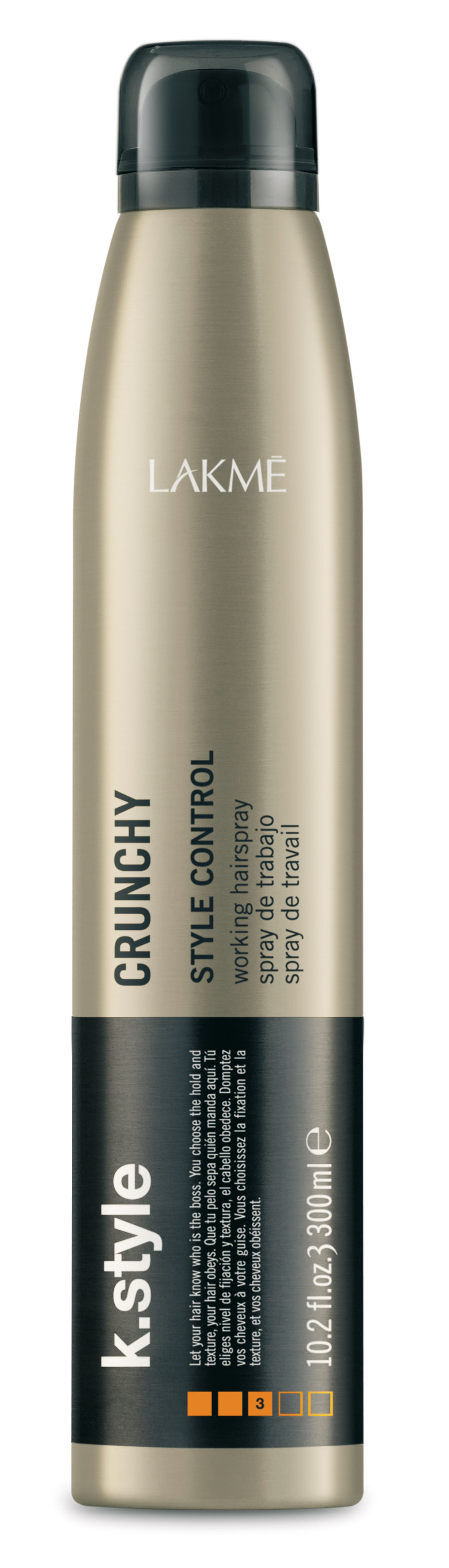 Crunchy - спрей для укладки волос (300 мл). Быстросохнущий лак для мгновенной и стойкой фиксации. Позволяет создавать укладки в движении. Низкое содержание VOC (летучих органических соединений). Содержит УФ фильтры. Легко расчесывается. Древесно-травяной аромат. Степень фиксации - 3 Применение: Для получения свободного стиля укладки распылить продукт на широкую щетку и расчесать сухие уложенные волосы. Распылять с расстояния 30 см. Объем: 300 мл Страна происхождения: Испания Артикул: 46343 Бренд: LAKME Эффект воздействия на волосы: Фиксация Тип волос: Для всех типов Уровень фиксации: 3