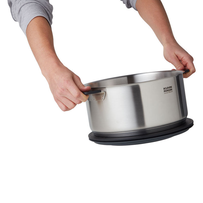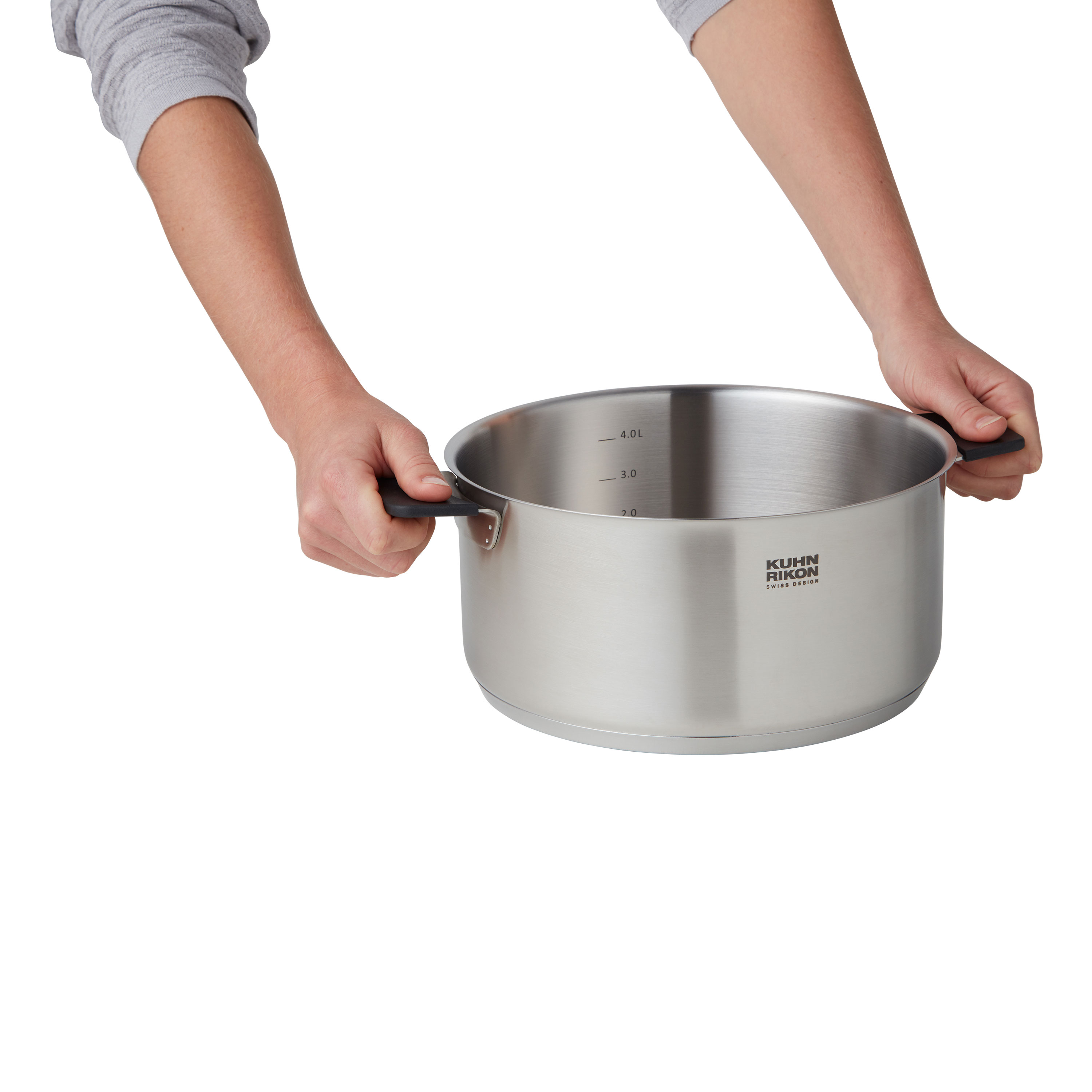 Кастрюля 5 л 24 см smart & compact kuhn rikon. Бренд: Kuhn Rikon Описание: Кастрюли подходят для всех типов варочных панелей, включая индукционные, и их очень легко чистить. Нескользящие ручки с силиконовым покрытием Кастрюля без крышки пригодна для запекания при температуре до 220°C Крышку нельзя класть в духовку, так как это может уменьшить магнитную силу встроенных магнитов.