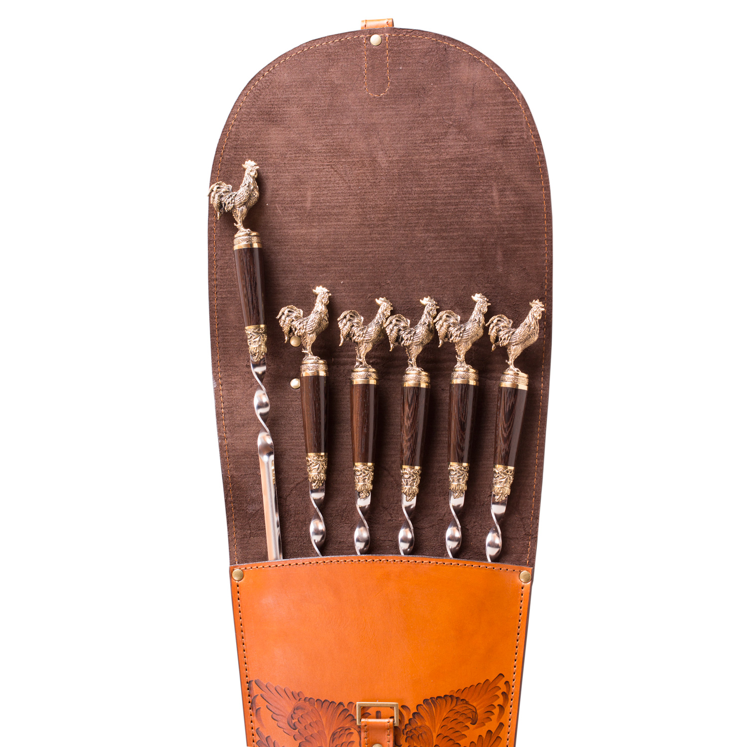 Шампура подарочные 6шт. в колчане из натуральной кожи