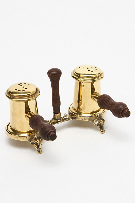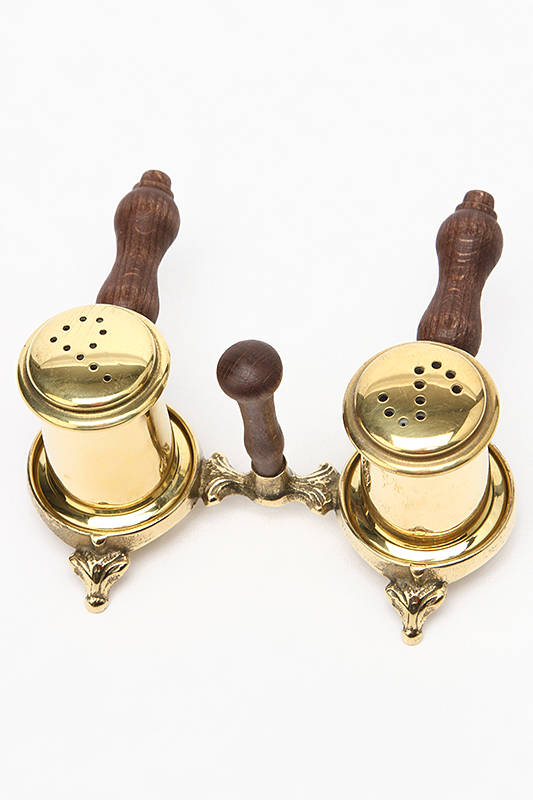 Солонка и перечница с деревянными ручками на подставке, 11х7 см