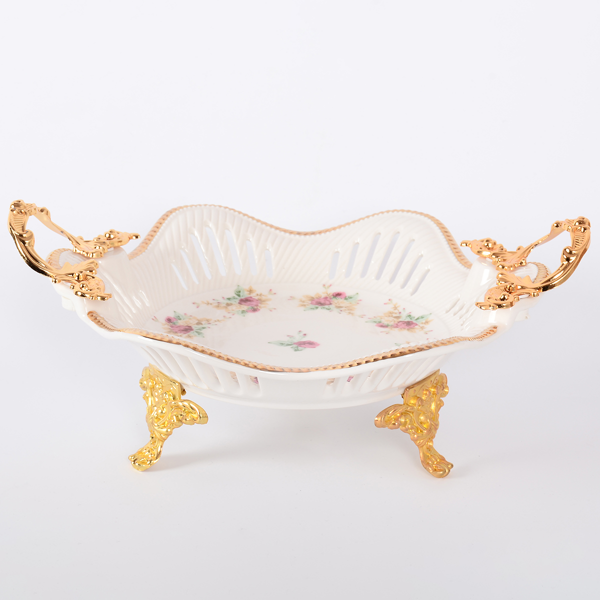 Фруктовница на ножках royal classics. Фруктовница на ножках Royal Classics Ею можно любоваться просто так, без наполнения! Прелестные изгибы золоченых ножек дополняют удобные рельефные ручки, выполненные в таком же стиле. А белоснежный фарфор чаши украшает ажурный декор и нежные флористические мотивы в прованском стиле – уютные, трогательные и неповторимые. Не только практичный аксессуар сервировки стола, но также оригинальный элемент декора.  развернуть описание ▼