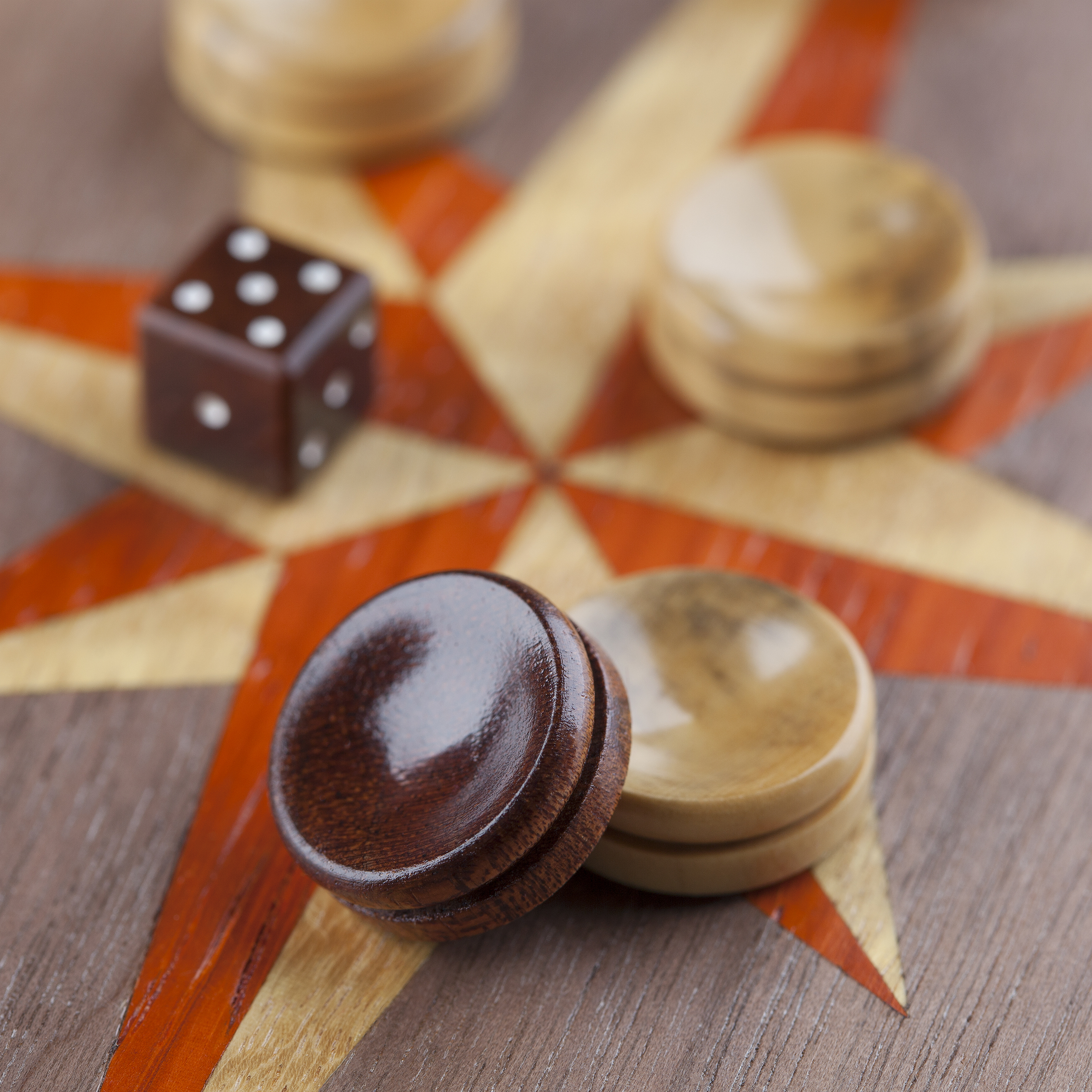 шашки: светлые - колхидский самшит, темные - красное дерево, подклеены фетром.