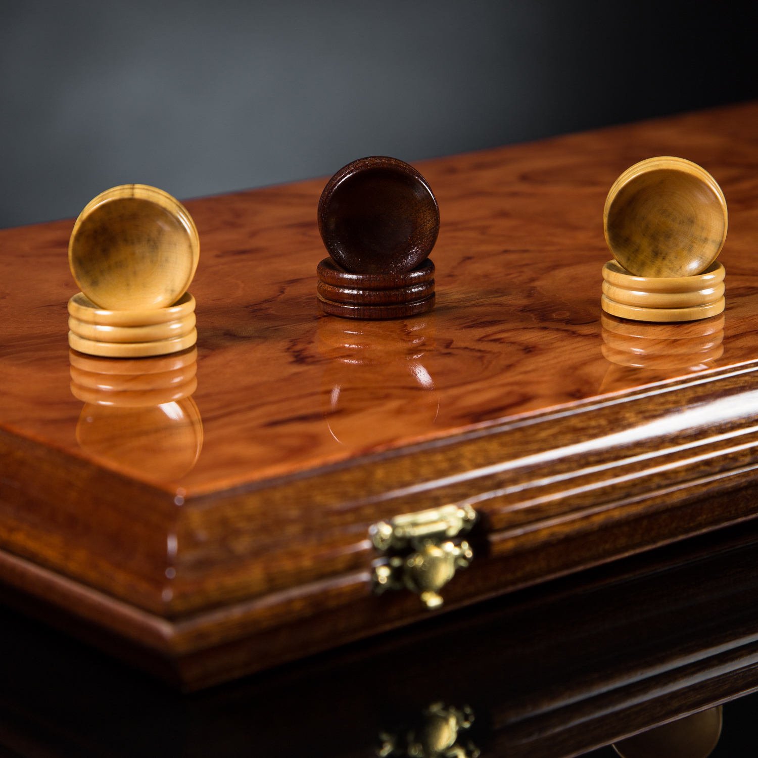 шашки светлые - колхидский самшит, темные - красное дерево сапеле, подклеены фетром.