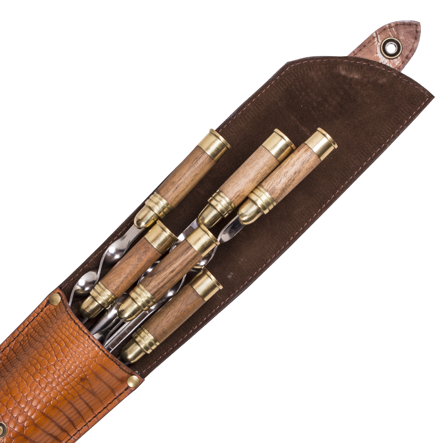 Шампура 6шт. в колчане из натуральной кожи «охота»