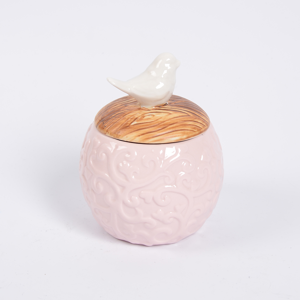 Ёмкость для сыпучих продуктов с деревянной крышкой розовая птичка