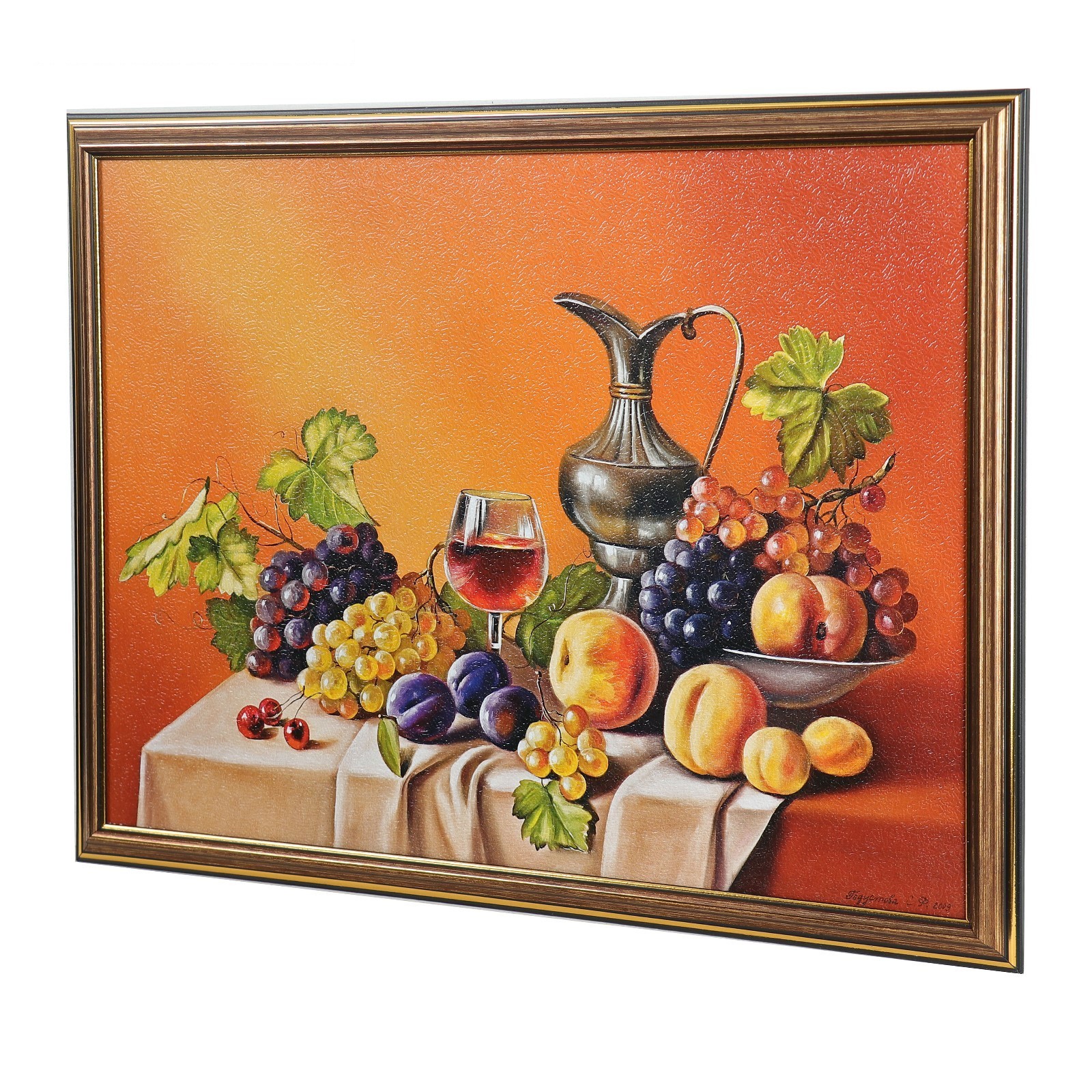 Картина натюрморт с кувшином и фруктами 33*43 см. Размер: 40 см х 30 см Вес, гр: 440 Материал: Бумага, пластик, ДВП Страна: Россия Высота, см: 33 Тематика: Еда Ширина, см: 43 Температурное ограничение: Нет