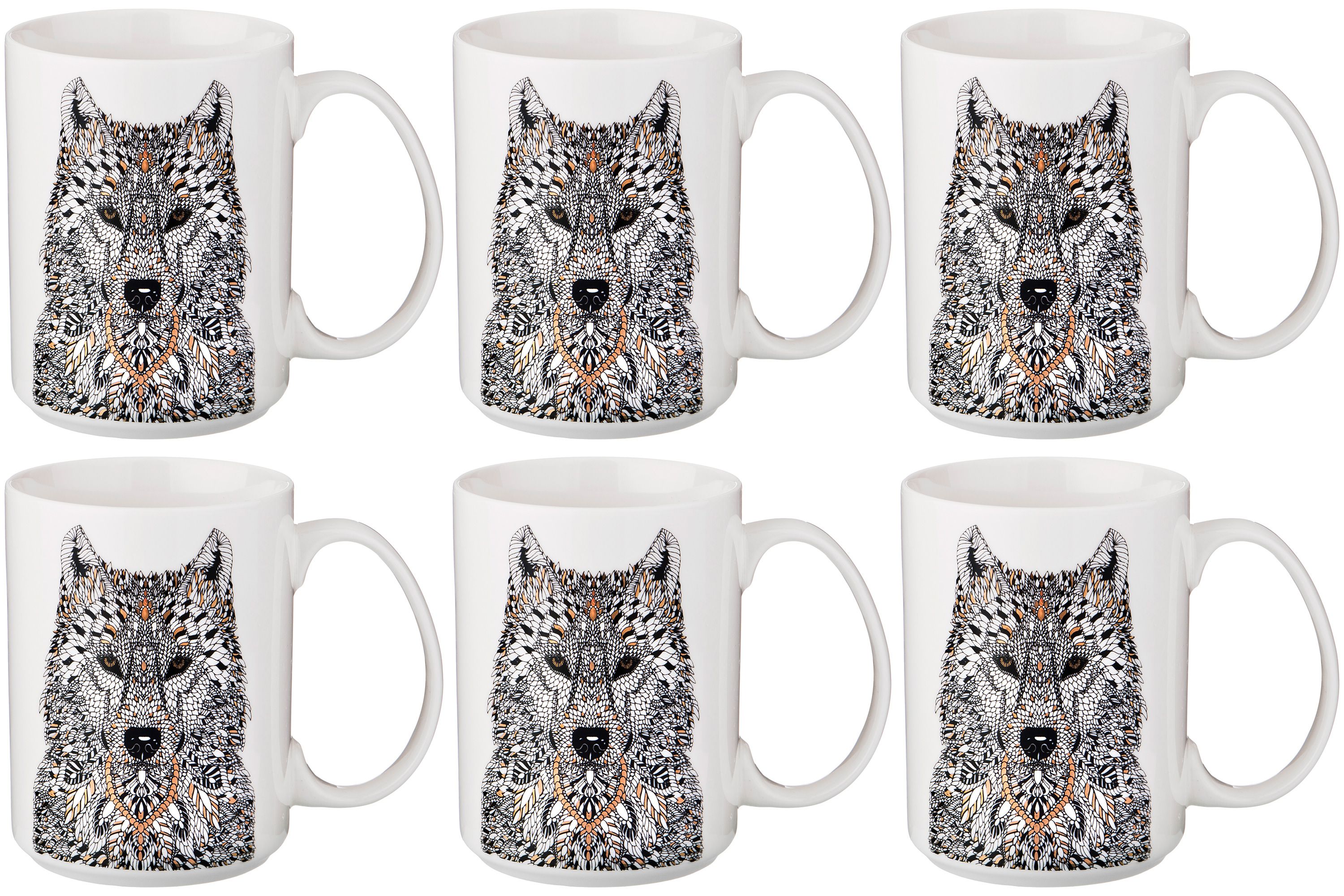 Набор кружек 6 шт для чая и кофе 500 мл фарфор Lefard Animal World / чашки фарфоровые белые на 6 персон подарочные