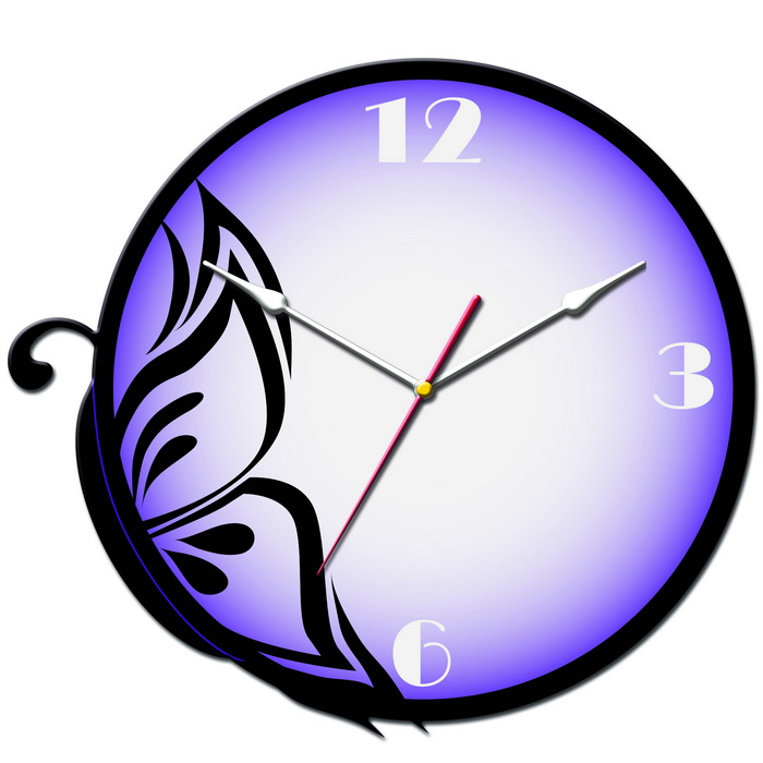 Корпус: часов выполнен из металла, арабские цифры. Часы круглые, на часах изображена бабочка. Открытые, без стекла, не боятся влажной уборки. Отлично будут смотреться в виде дополнительного декора в доме, на кухне, в детской комнате