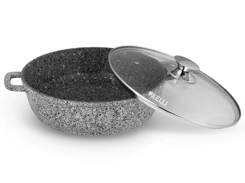 Сотейник Kl-4001-26 26см.4,5л.мрам.покр.стекл.крыш.