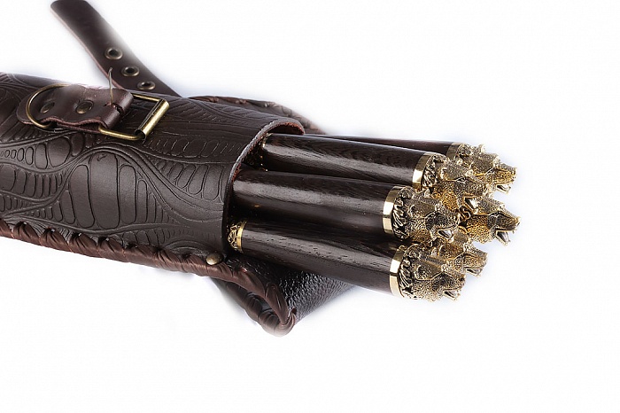 Набор шампуров медведь( латунь) в колчане с мангалом