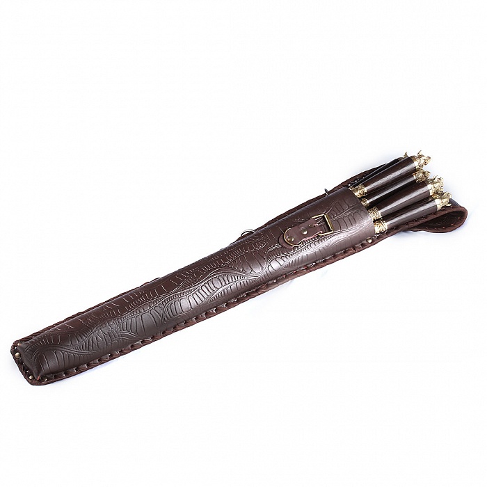 Набор шампуров бык( латунь)  в кожаном колчане с мангалом