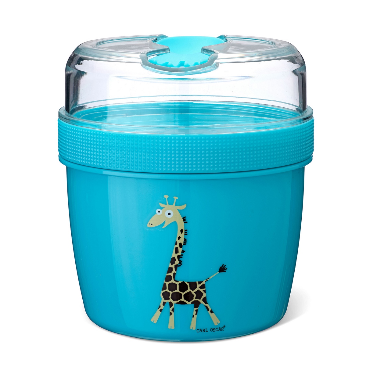 N'ice Cup™ Giraffe – инновационный ланч-бокс бирюзового цвета от шведского бренда Carl Oscar, который облегчает транспортировку и самое главное – сохраняет свойства еды, приготовленной из свежих продуктов! Состоит из двух частей: основного отделения объемом 0,5л и верхнего отсека объемом 0,3л с крышкой для посыпок и топпингов. Отсеки разделены, чтобы посыпки оставались сухими и хрустящими. Кроме того, в комплект N'ice Cup™ входит многофункциональный столовый прибор CUTElery™ 3в1, который закрепляется на крышке и включает в себя ложку, вилку и ножик.