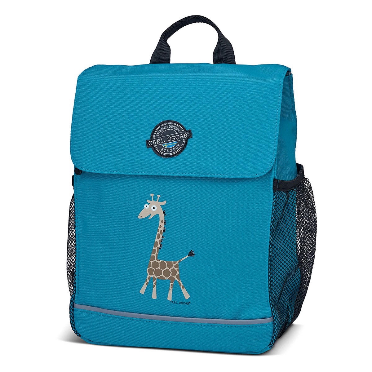 Рюкзак детский pack n' snack™ giraffe бирюзовый. Пусть дети ходят в детский сад или школу на стиле! Рюкзак Pack n' Snack™ Giraffe - идеальный аксессуар от шведского бренда Carl Oscar. С ним очень удобно ходить на развивающие кружки, в садик или начальную школу, ездить на пикники или просто брать с собой на прогулку. В бирюзовом рюкзаке с изображением смешного жирафика на лицевой стороне есть переднее внешнее отделение на молнии YKK, два удобных сетчатых кармана для бутылок с водой по бокам и просторная внутренняя часть с двумя отделениями. Внешняя часть рюкзака выполнена из прочного водоотталкивающая полиэстера, а верхний клапан легко открывается и закрывается благодаря магнитным кнопкам. Мягкие регулируемые плечевые ремни с дополнительным нагрудным ремнем обеспечивают поддержку и комфорт при повседневном ношении. А светоотражающие полоски на плечевых ремнях и лицевой стороне рюкзака обеспечивают дополнительную безопасность в условиях недостаточной освещенности. Оснащен ручкой для переноски. Изображения животных, специально разработанные для продуктов Carl Oscar, - работа известного шведского иллюстратора Линн Элдин. • Оригинальный дизайн с забавными и яркими персонажами • Молния YKK и водоотталкивающий материал • Множество внешних и внутренних отделений • Удобные плечевые ремни со светоотражающими вставками Дизайн: Linn Eldin для Carl Oscar®