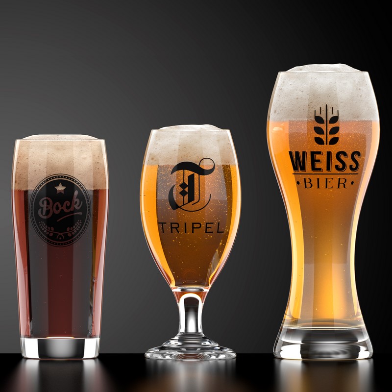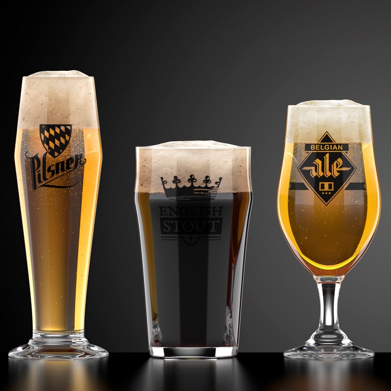 • В наборе шесть стеклянных стаканов для разных сортов пива