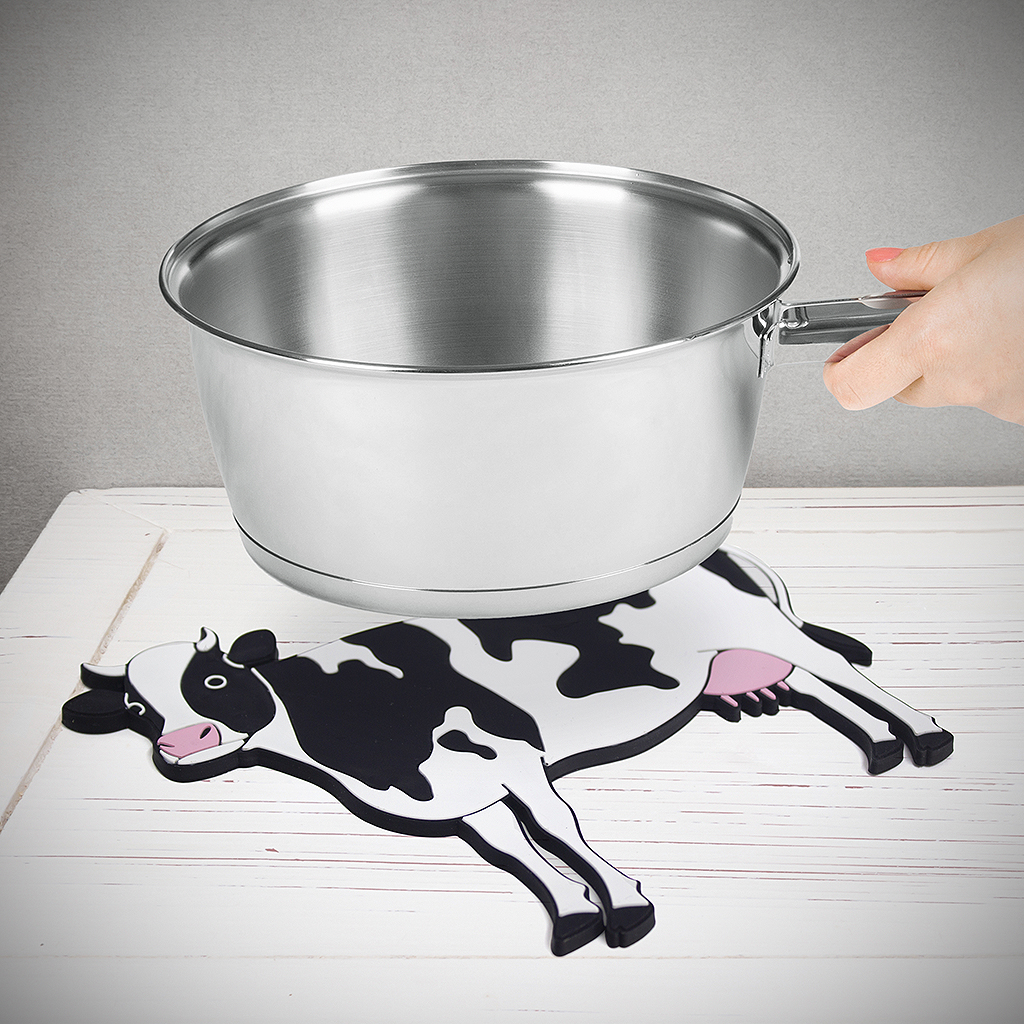 Подставка под горячее la vache магнитная. На любой кухне есть набор обязательных предметов, без которых не обойтись каждый день. Один из них – подставка под горячее, которая может быть не только полезным предметом, но также украсит интерьер. Магнитная подставка под горячее La Vashe от испанского бренда Balvi – это компактный аксессуар, который может располагаться не только на столе, но также крепиться на холодильник или иные металлические поверхности. Оригинальное оформление в виде коровы делает предмет стильным элементом дизайна. • Долговечность – силикон безопасен и прослужит долго • Яркий дизайн – подставка прекрасно смотрится в интерьере • Практичность – подставка эффективно защищает поверхности от повреждений