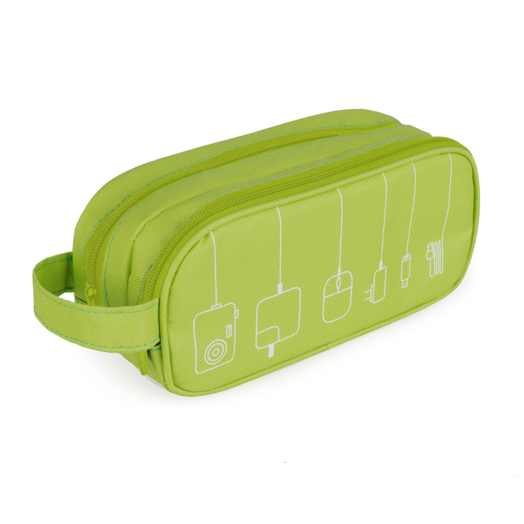 Органайзер для проводов tidy зеленый. Во время поездок приходится брать с собой не только гаджеты, но и вспомогательные предметы – аккумуляторы, зарядные устройства и прочие провода. Чтобы они не повредились в процессе транспортировки, не запутались и не потерялись, испанский бренд Balvi создал органайзер для проводов Tidy. Органайзер изготовлен из прочного материала, имеет два отделения на молнии, в которых можно безопасно разместить гаджеты (телефон, плеер, фотоаппарат), а также провода и все необходимое к ним. Тематический принт на лицевой стороне позволит сразу идентифицировать органайзер в сумке, чемодане или шкафу. • Стильный дизайн и необычное оформление • Практичность – провода не запутаются, не повредятся • Помогает компактно хранить предметы, не занимая много места