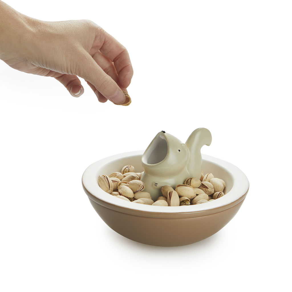Удивите своих гостей необычной подачей угощений. Блюдо для снеков и закусок Hungry Squirrel от испанского бренда Balvi станет оригинальным решением для сервировки. Емкость из керамики имеет диаметр 16 см, выполнена в форме гнезда с голодной белкой. Состоит из двух частей: верхняя отлично разместит в себе чипсы, фисташки, оливки и прочие закуски. Нижняя - скорлупу, шелуху и косточки. Доступ к нижнему отсеку осуществляется через широко открытый рот очаровательной белки.