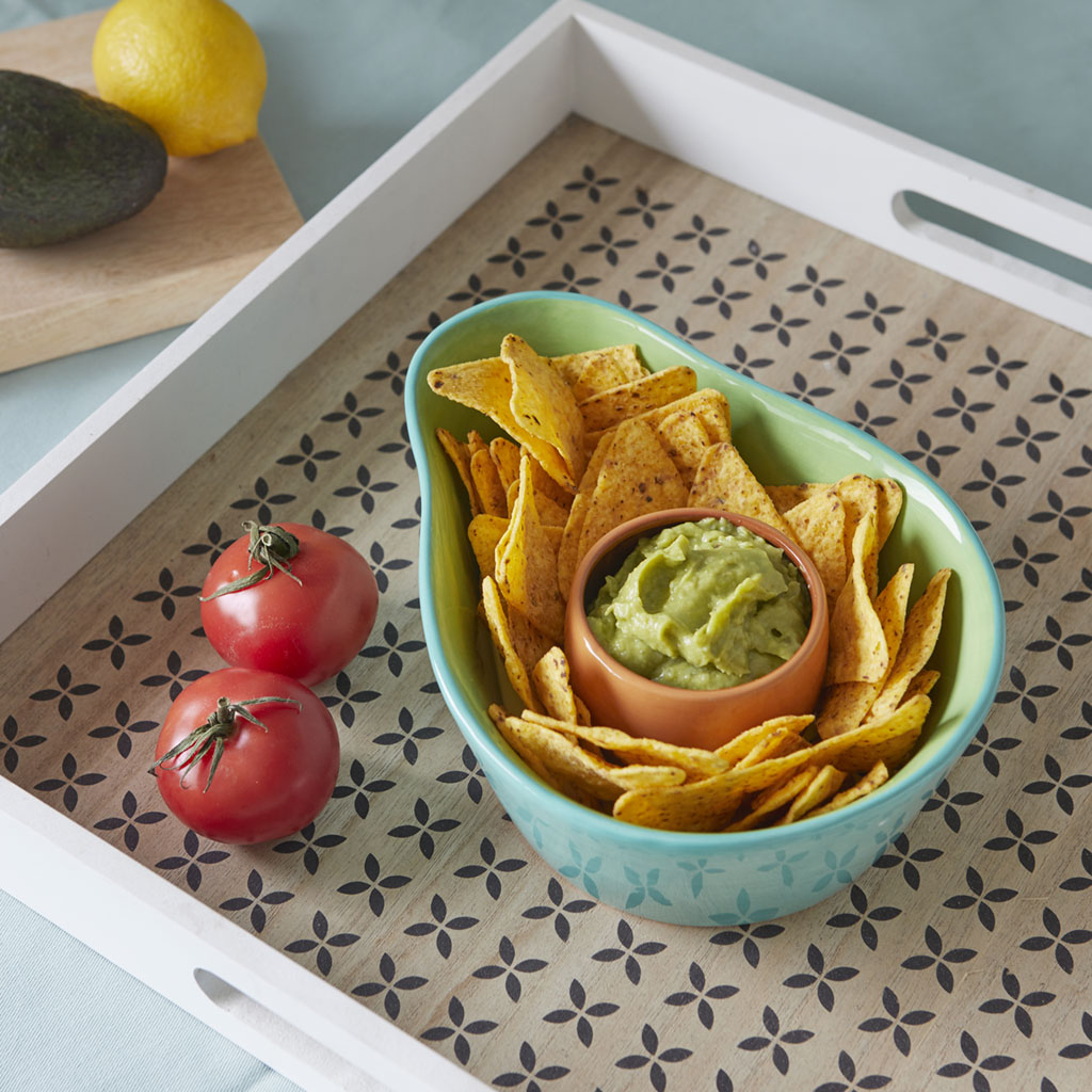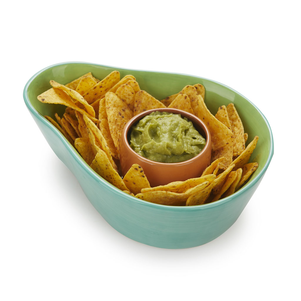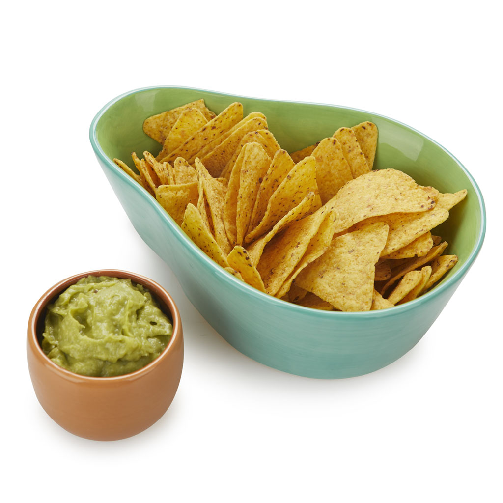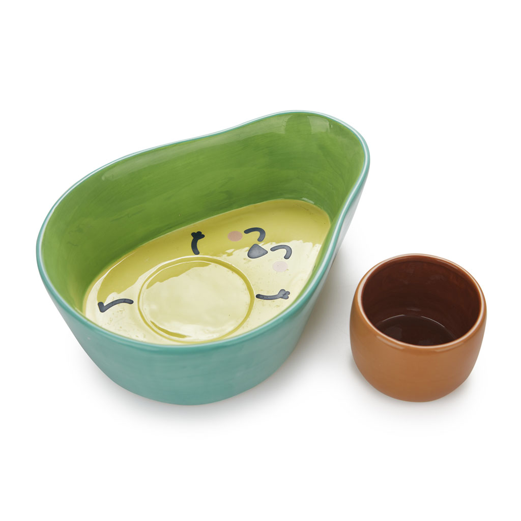 Блюдо для снеков и закусок avocado. Оригинальным решением для сервировки закусок перед приходом гостей станет специальное блюдо для снеков и закусок Avocado, разработанный испанским брендом Balvi в коллаборации с Mr. Wonderful. Миска в форме авокадо изготовлена из керамики и покрыта зеленой глазурью. Очаровательнейший рисунок, нанесенный на дно посуды, не оставит равнодушным никого и вызовет бурю положительных эмоций у каждого гостя. Дополнительная емкость, входящая в комплект, является продолжением дизайнерской мысли и выполнена в форме косточки авокадо. Вы можете разместить ее внутри блюда или сбоку, как вам удобнее. Может использоваться как соусница, например, для подачи начоса с соусом сальса или гуакамоле или же выступать в качестве емкости для скорлупы и косточек от орешков, оливок и других закусок. Для сохранения принта рекомендуем мыть вручную без использования абразивных материалов и жестких губок. • Необычное и оригинальное исполнение • Глубокая и вместительная миска размером 22 см • Дополнительная емкость для соуса, скорлупы или косточек • Идеальный подарок для любителей вечеринок и торжеств
