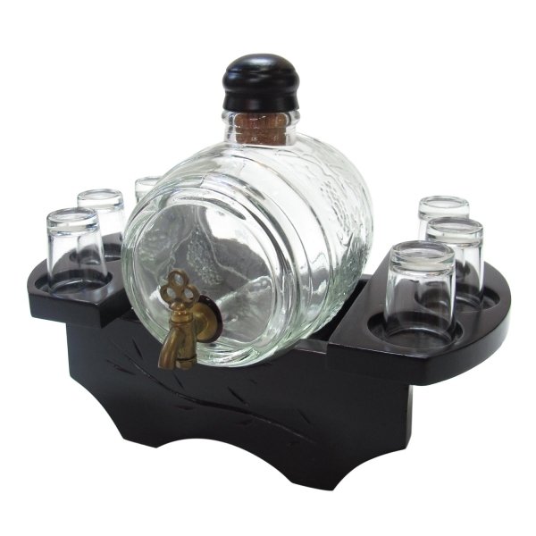 Емкость для напитков, 1000 мл с 6 стопками на деревянной подставке, 1000 м