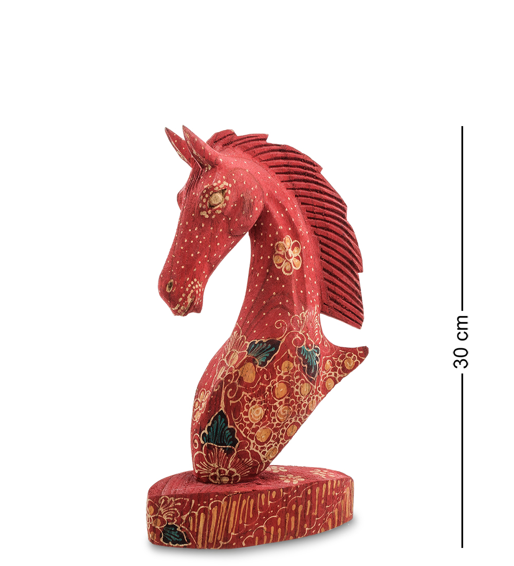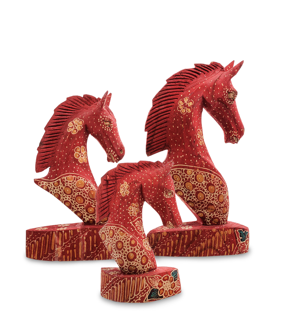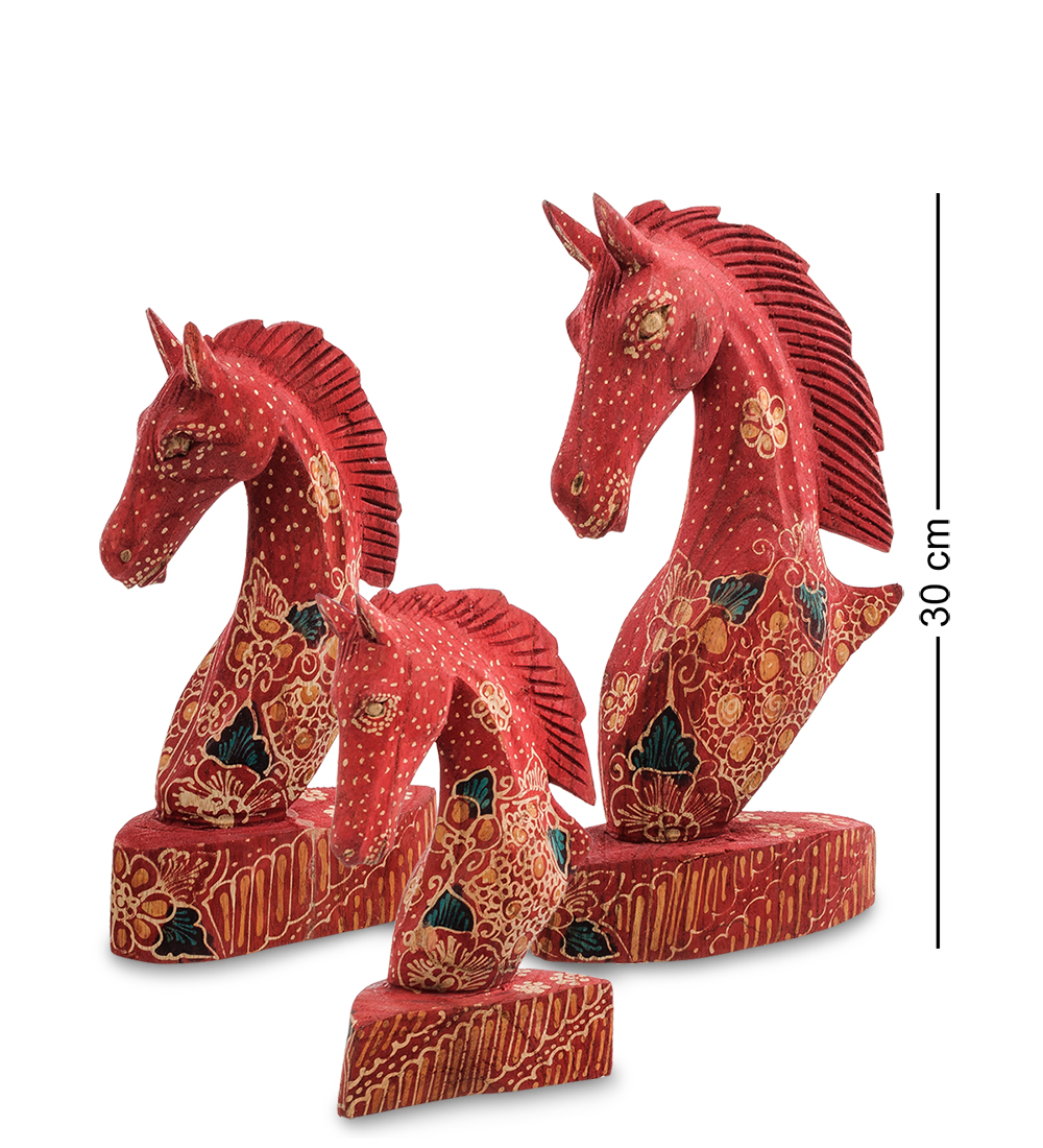 10-014 фигурка дерев. лошадь (батик, о.ява) набор из 3-х, красн. 25см