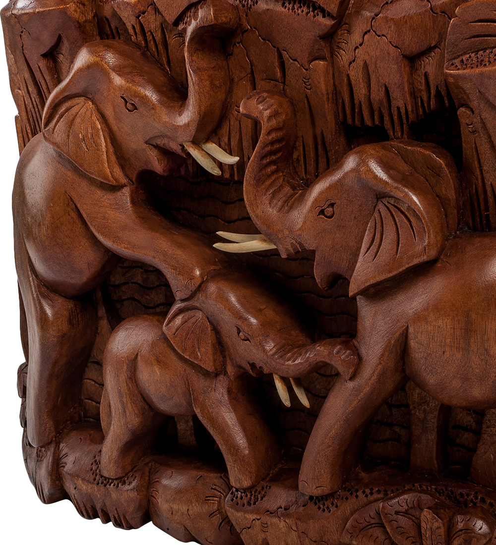 17-005 панно резное пирамида из слонов - символ долголетия (суар, о.бали)