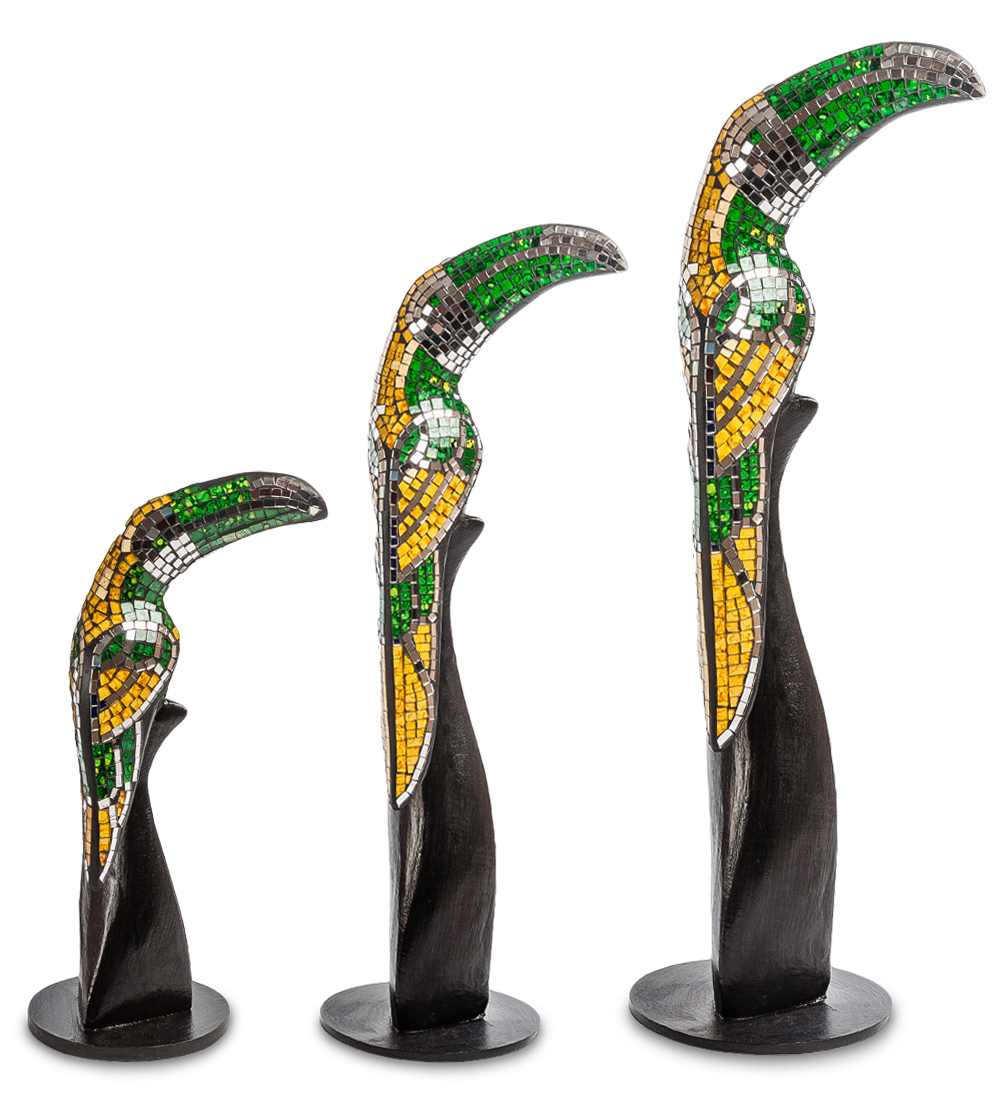 23-029 н-р статуэток из трех тукан дерево+стекл.мозаика 50/40/30см