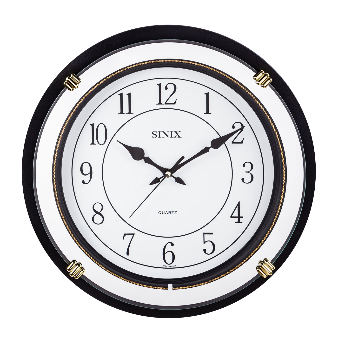 Настенные часы 41см круглые, плавный ход, арабские цифры sinix 4041w. Размеры, мм 410х410х56 мм. Материал Пластик Форма Круглые Механизм Плавного хода Циферблат Арабский Цвет корпуса Черный Предназначение Для дома Особенности Настенные