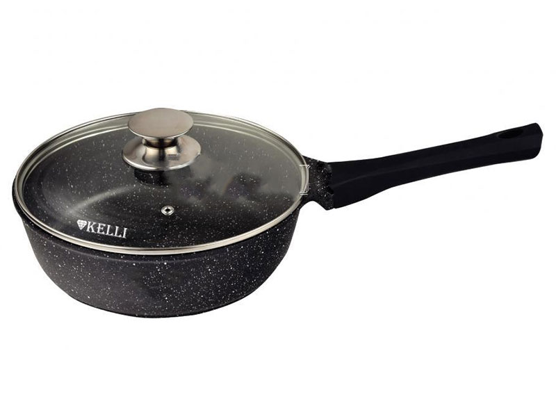Сковорода Kl-4081-24 24см.мрамор.покр.с стекл.крышк.
