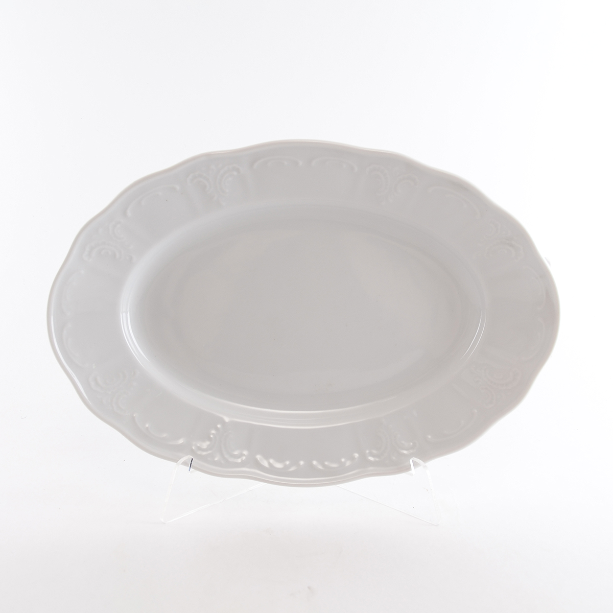 Блюдо овальное Benedikt bellevue 28 см Декор на кайме блюда от бренда Benedikt серии bellevue напоминает молочные пенки. Это что-то из детства - уютное и такое родное… наполнит ваш дом теплом и уютом, подарит ощущение праздника и благополучия посуда из чешского фарфора – экологически чистая, прочная и красивая. Она поможет подчеркнуть великолепие подачи и безупречно сервировать стол.