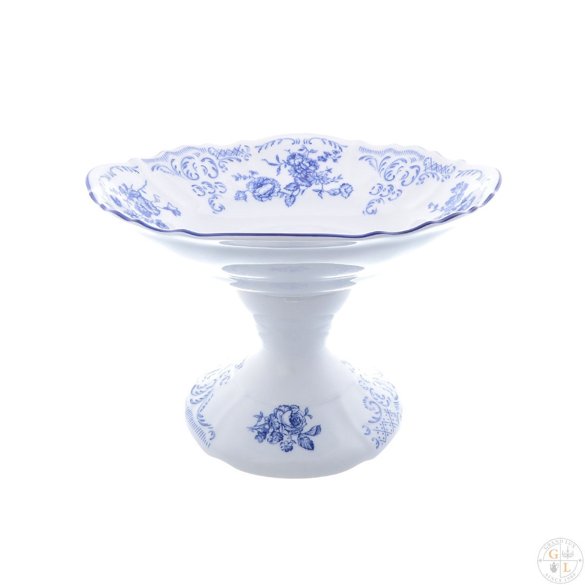Фруктовница на ножке Bernadotte синие розы 25см