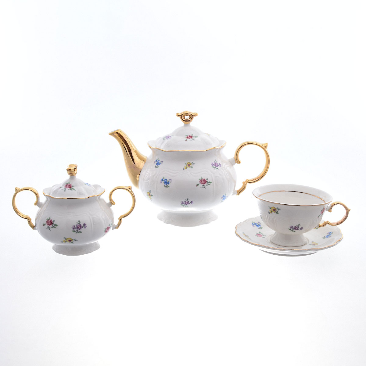 Гармония ансамбля белого с золотом – это как отправная точка в создании посуды для особых случаев. А еще милые цветочки в виде россыпи, вносящие нотку красноречивой простоты. Именно так можно охарактеризовать представленный чайный сервиз из китайского фарфора. Он станет достойный украшением вашего чайного стола или памятным подарком ценителю качественной посуды с характером.
