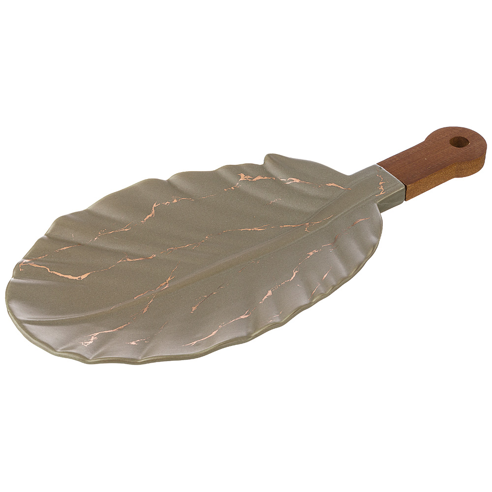 Блюдо для сервировки с деревянной ручкой коллекция золотой мрамор цвет: gr.