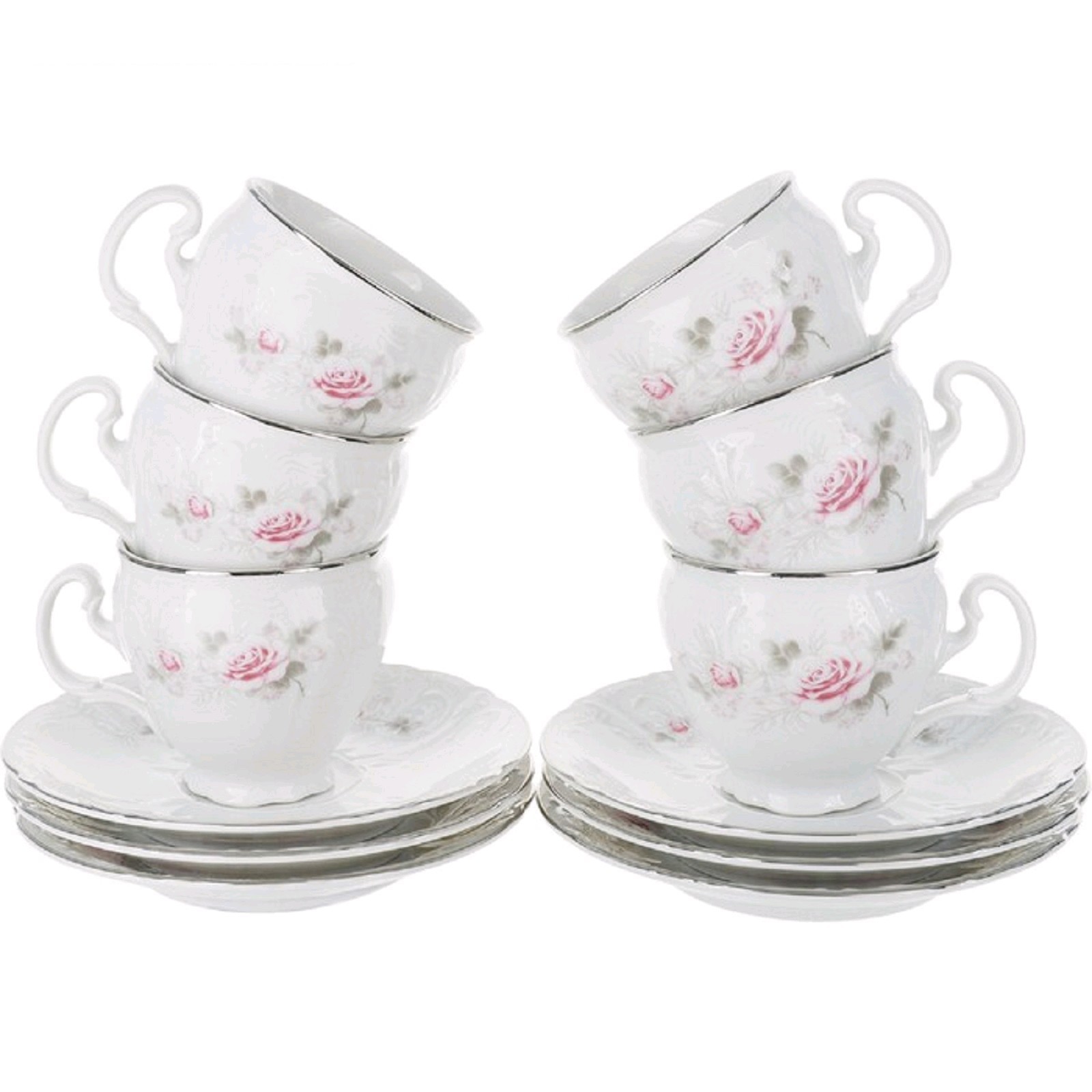 Набор из 6-ти чайных пар бочка Bernadotte серая роза платина 240 мл