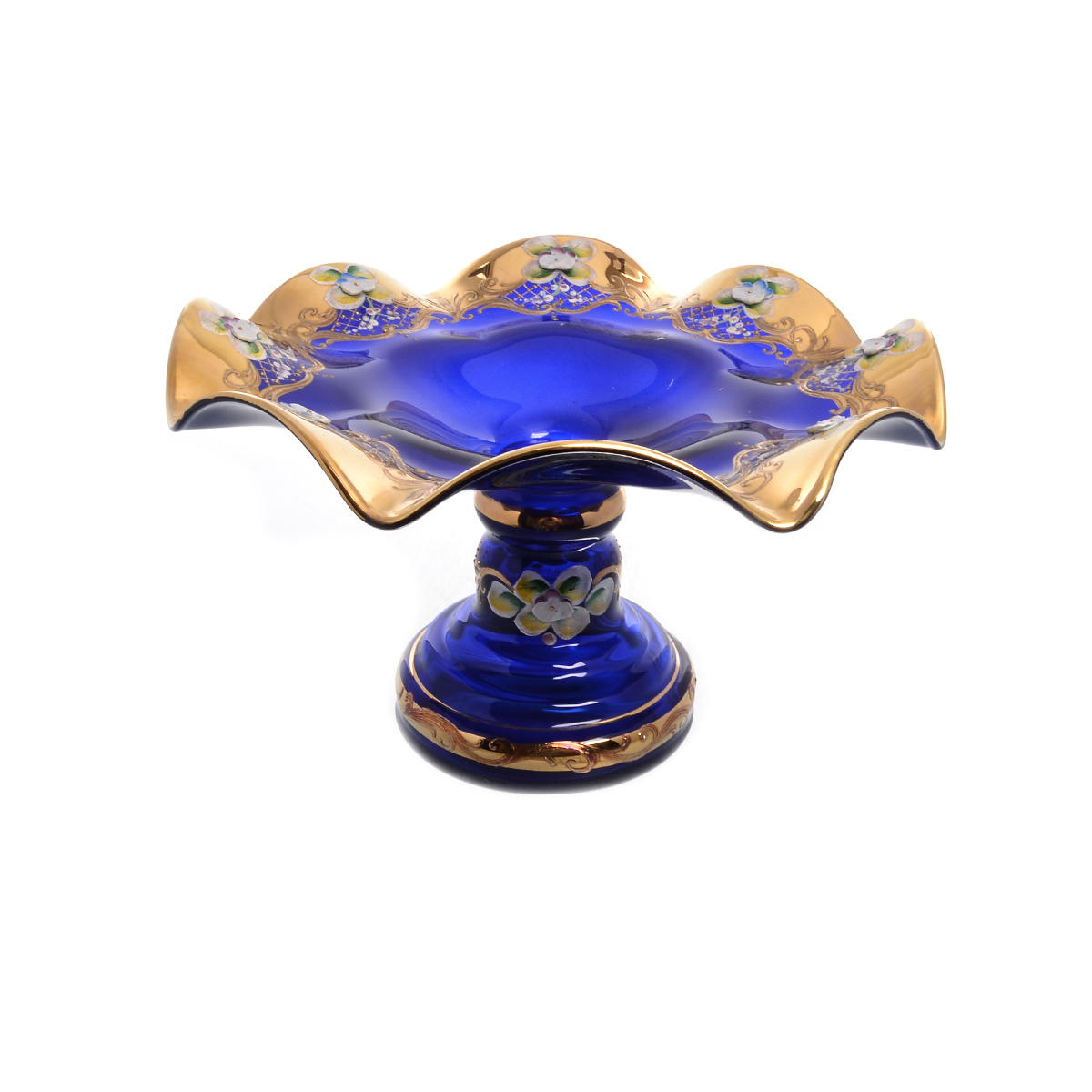 Фруктовница на ножке Bohemia лепка синяя веер