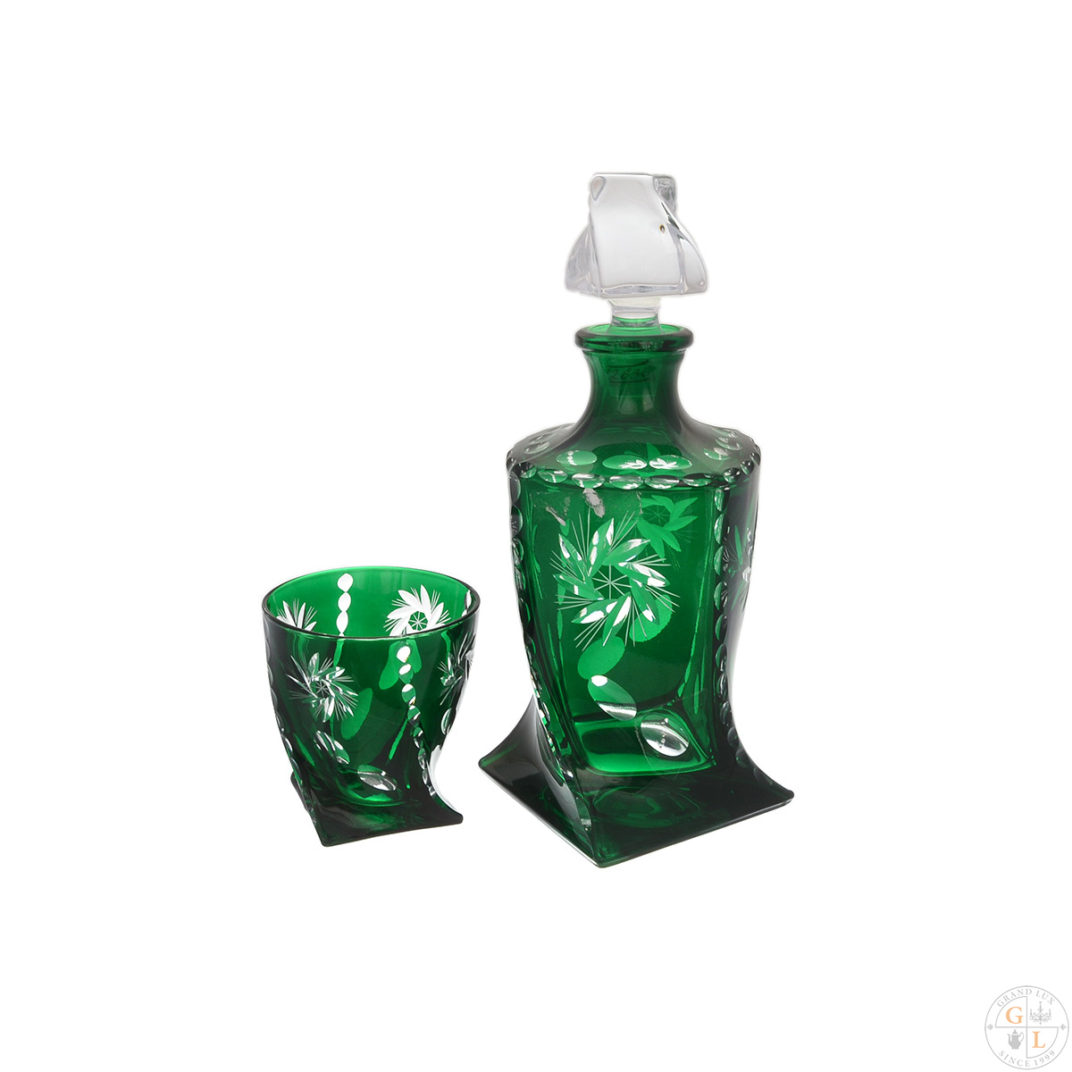 Набор для виски Bohemia Quadro зеленый цветной хрусталь 7 предметов (графи