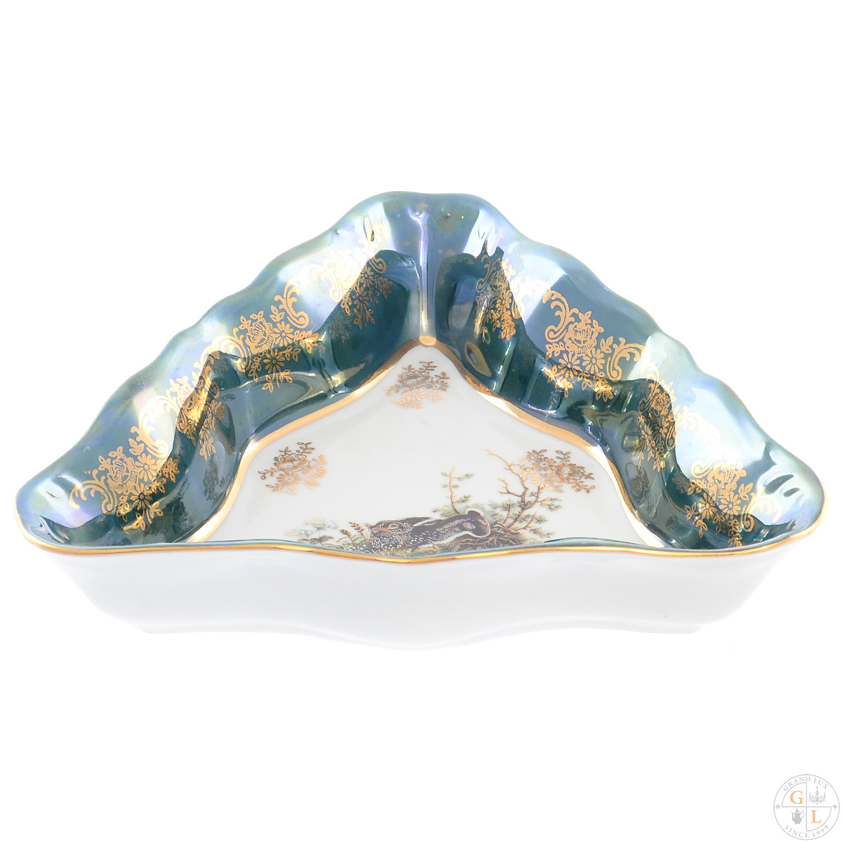 Салатник треугольный Queens Crown корона охота зеленая 19 см