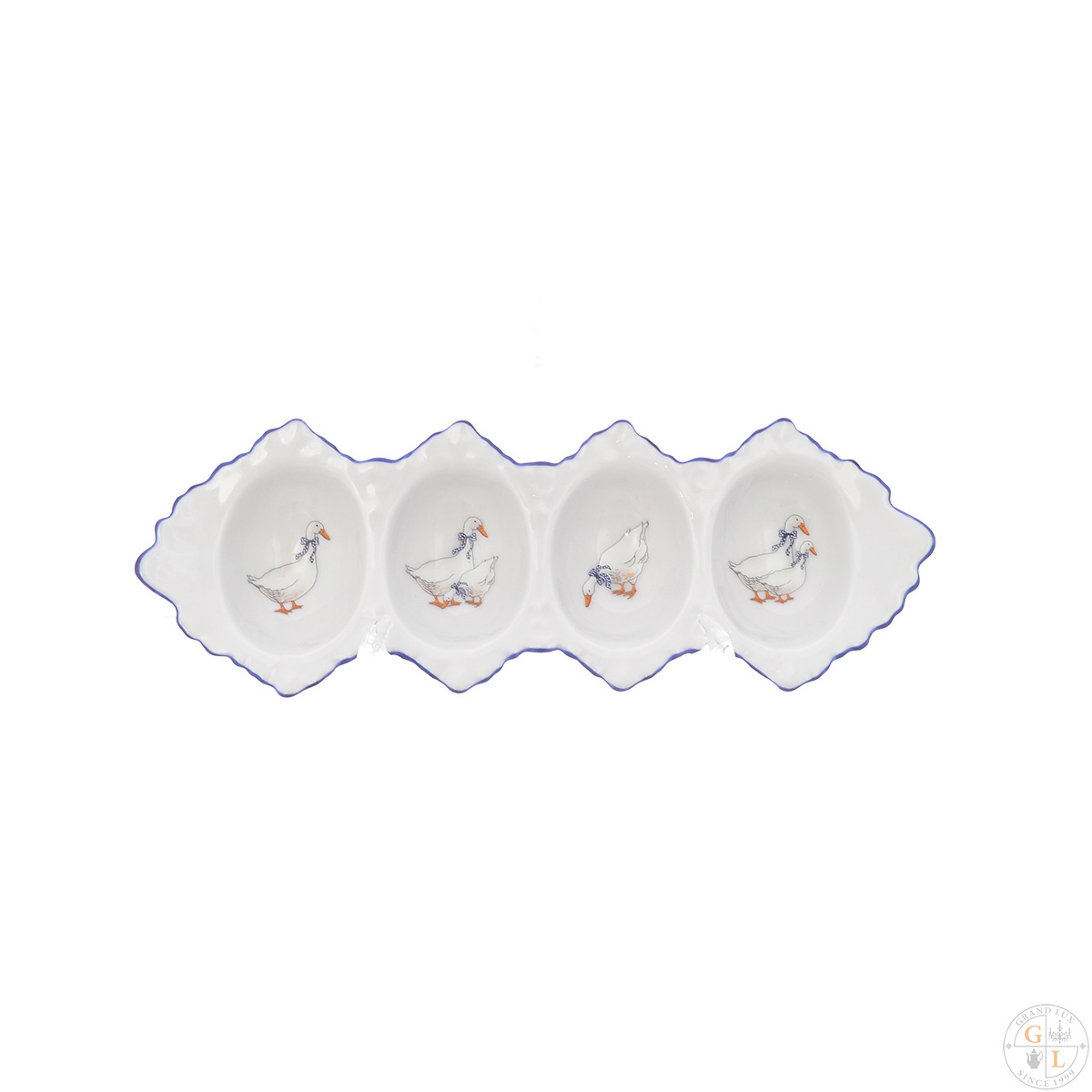 Поднос для яиц queens crown гуси 23 см. Поднос для яиц 23 см Гуси Корона Ничего лишнего и только то, что нужно. Чтобы у каждого яйца – целого или половинки фаршированного – было свое место. Посуда коллекции Гуси является одной из самых популярных в мире: на ней нет золотой или серебряной отводки, поэтому она подходит для использования в микроволновой печи или посудомоечной машине. Тип товара салфетки-подставки (Чехия, Фарфор, Queens Crown) Страна происхождения Чехия Материал Фарфор Бренд Queens Crown Серия Гуси Назначение Предмет домашнего обихода из фарфора
