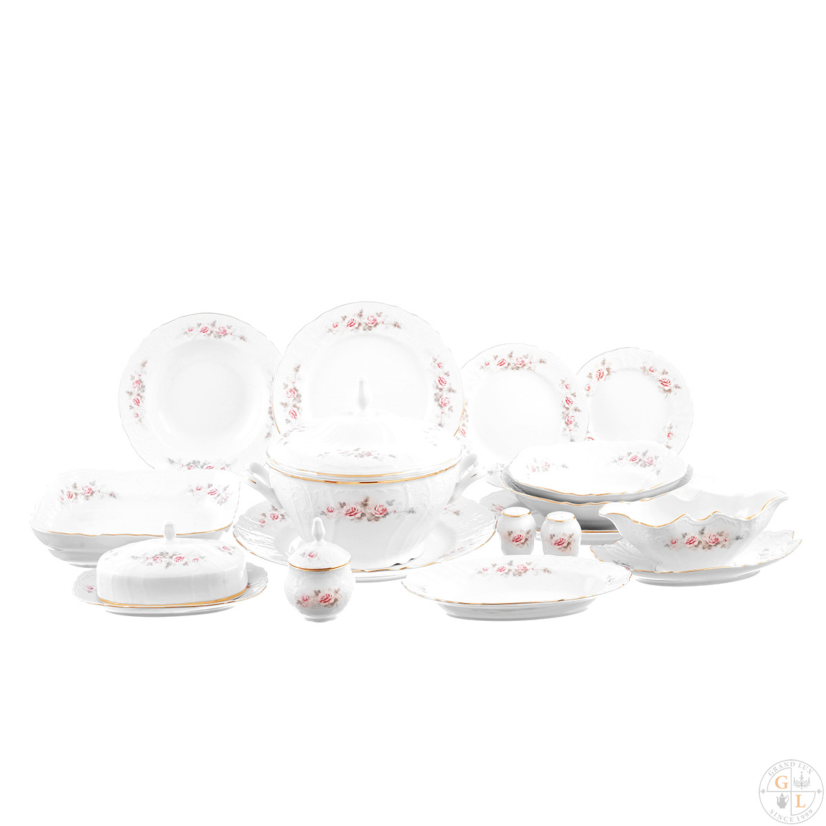 Столовый сервиз на 12 персон Bernadotte серая роза золото 67 предметов