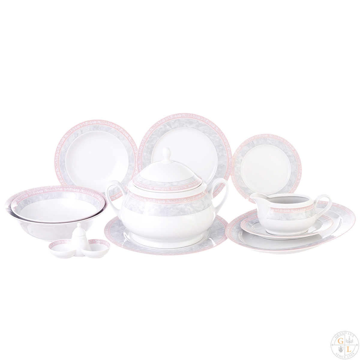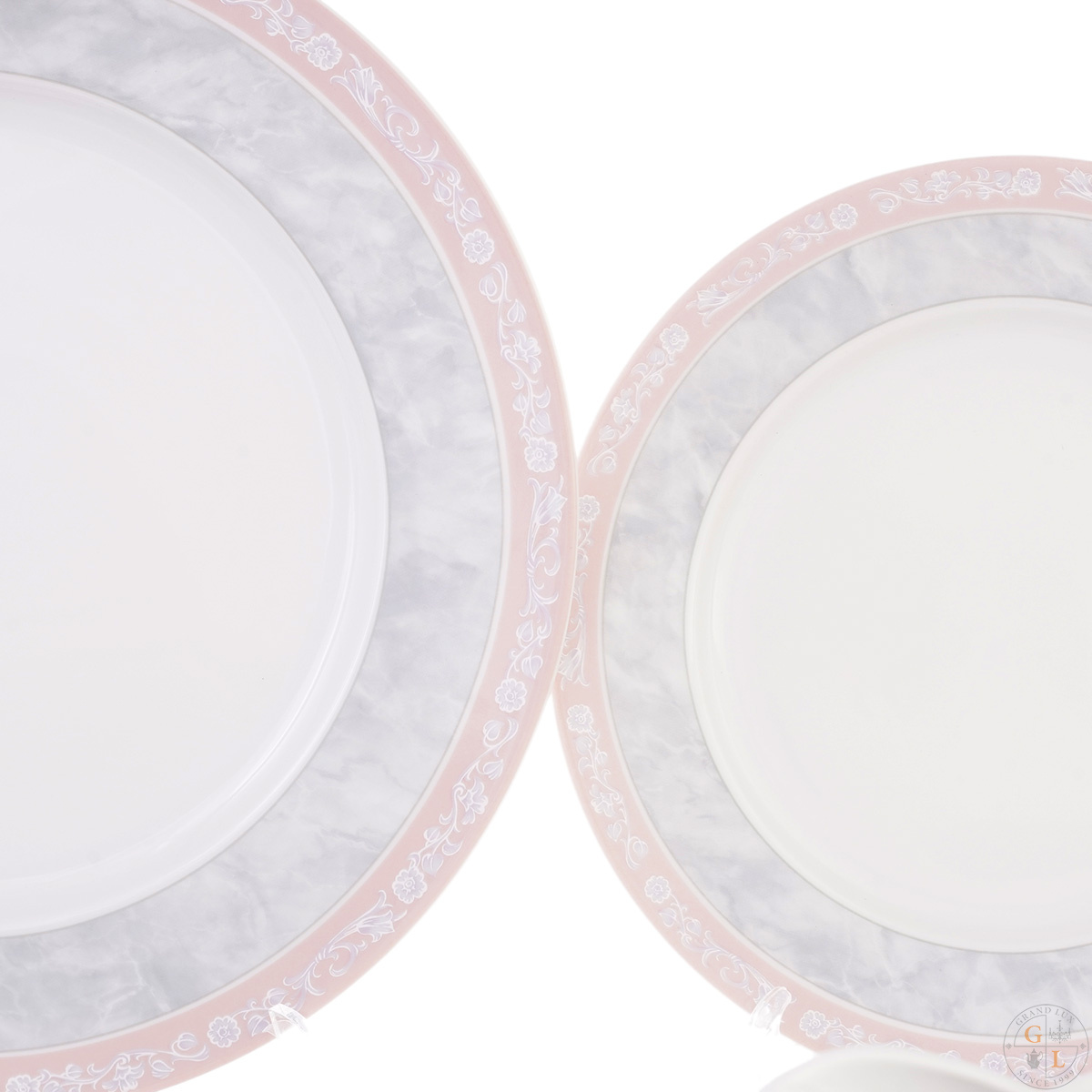 Столовый сервиз Thun яна серый мрамор с розовым кантом 6 персон 27 предмет